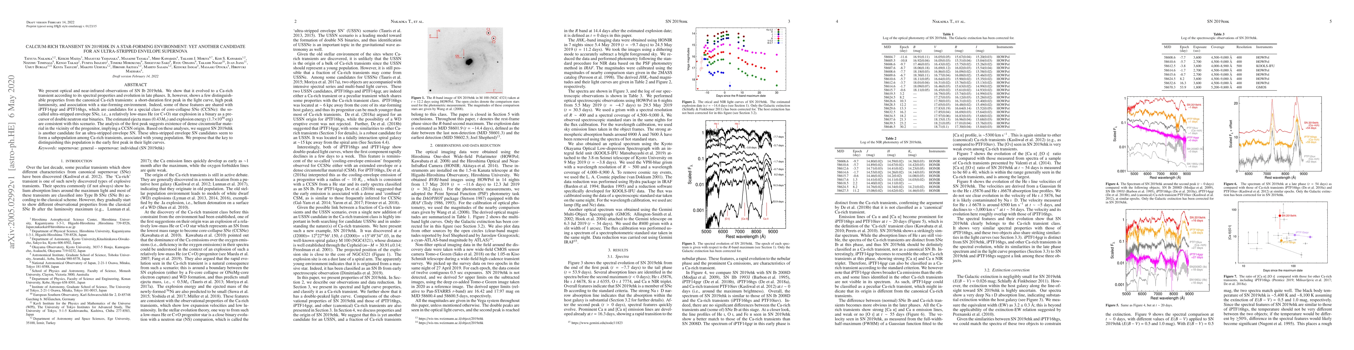 SN 2019ehk is identified as a Ca-rich transient with unique properties, including a short-duration first peak, high peak luminosity, and association with a star-forming environment, suggesting it may be an ultra-stripped envelope supernova. The analysis supports the idea that it is a low-mass helium star explosion in a binary system, forming a subpopulation of Ca-rich transients linked to young stellar populations.