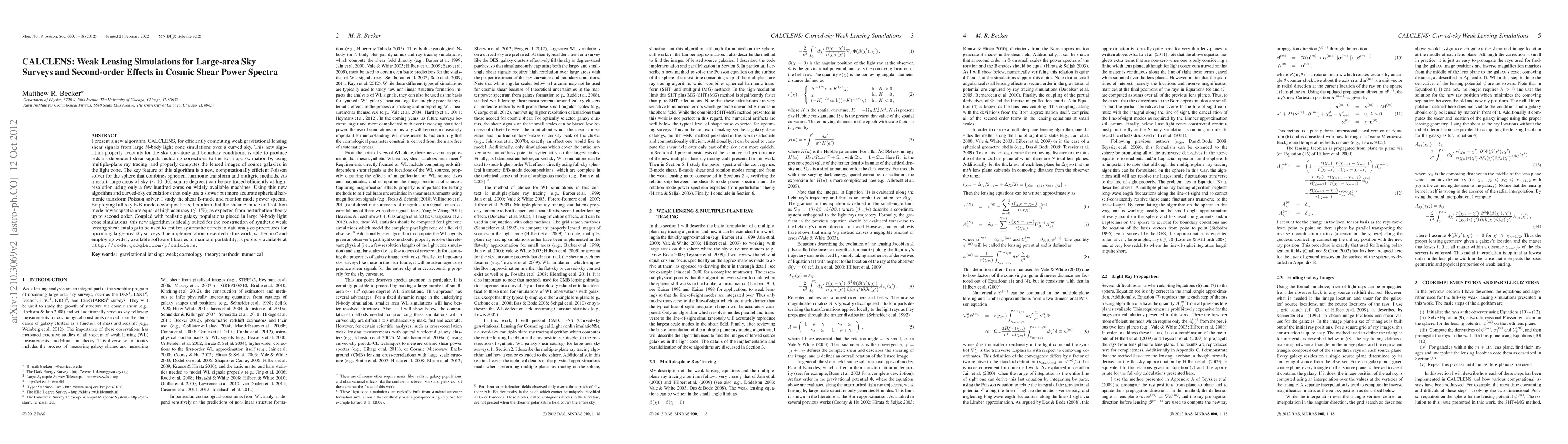 CALCLENS is a new algorithm for efficiently computing weak gravitational lensing signals from large-area sky surveys, featuring a novel Poisson solver for curved sky simulations. It accurately computes shear signals and lensed images, enabling high-resolution analysis of cosmic shear power spectra and confirming theoretical predictions for shear B-mode and rotation mode power spectra.