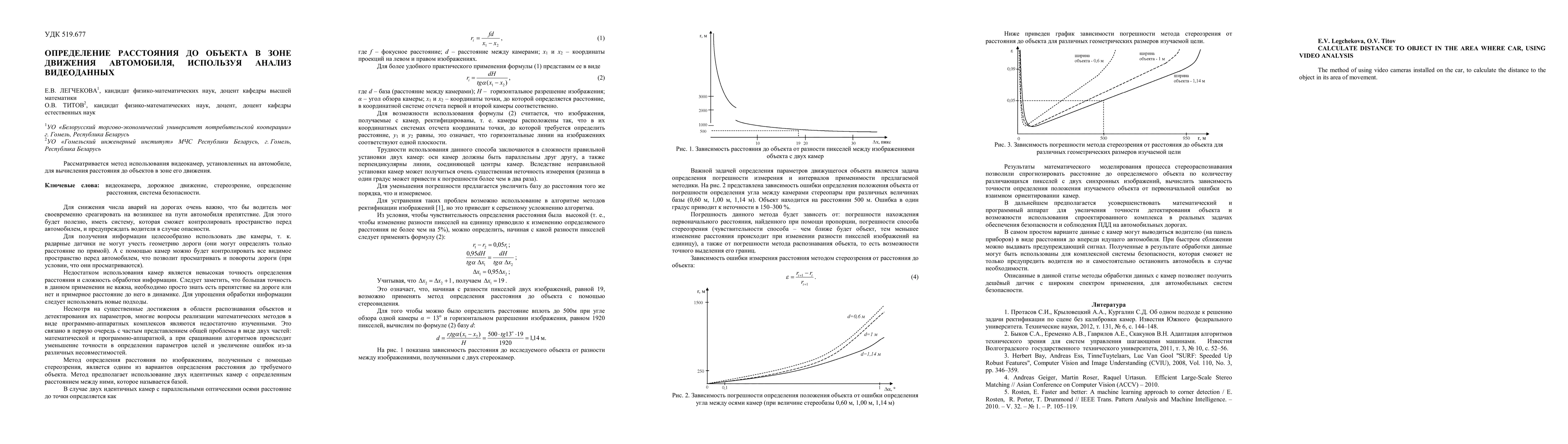 The method of using video cameras installed on the car, to calculate the distance to the object in its area of movement.