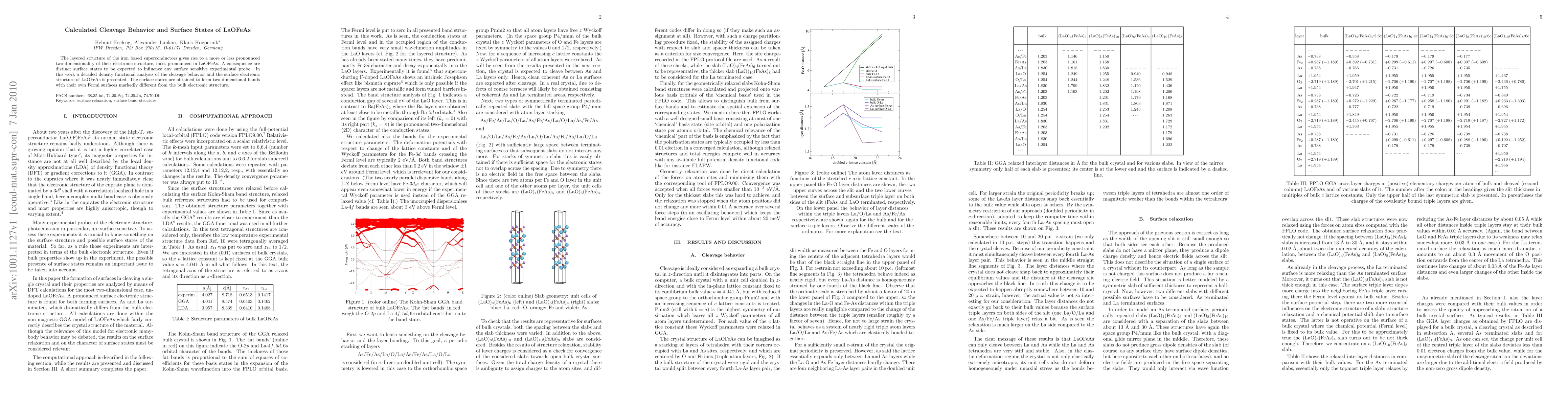 The layered structure of the iron based superconductors gives rise to a more or less pronounced two-dimensionality of their electronic structure, most pronounced in LaOFeAs. A consequence are distinct surface states to be expected to influence any surface sensitive experimental probe. In this work a detailed density functional analysis of the cleavage behavior and the surface electronic structure of LaOFeAs is presented. The surface states are obtained to form two-dimensional bands with their own Fermi surfaces markedly different from the bulk electronic structure.
