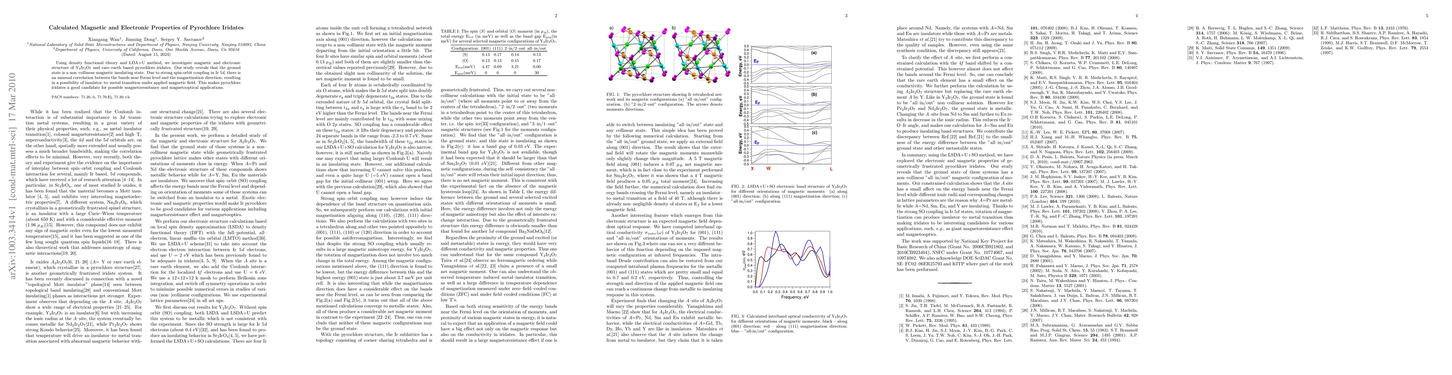 This research employs density functional theory and LDA+U method to analyze the magnetic and electronic properties of Y$_{2}$Ir$_{2}$O$_{7}$ and rare-earth pyrochlore iridates, revealing a non-collinear magnetic insulating ground state. The study highlights an unusual correlation between bands near the Fermi level and magnetization direction, suggesting an insulator-to-metal transition under magnetic fields, indicating potential for magnetoresistance and magnetooptical applications.
