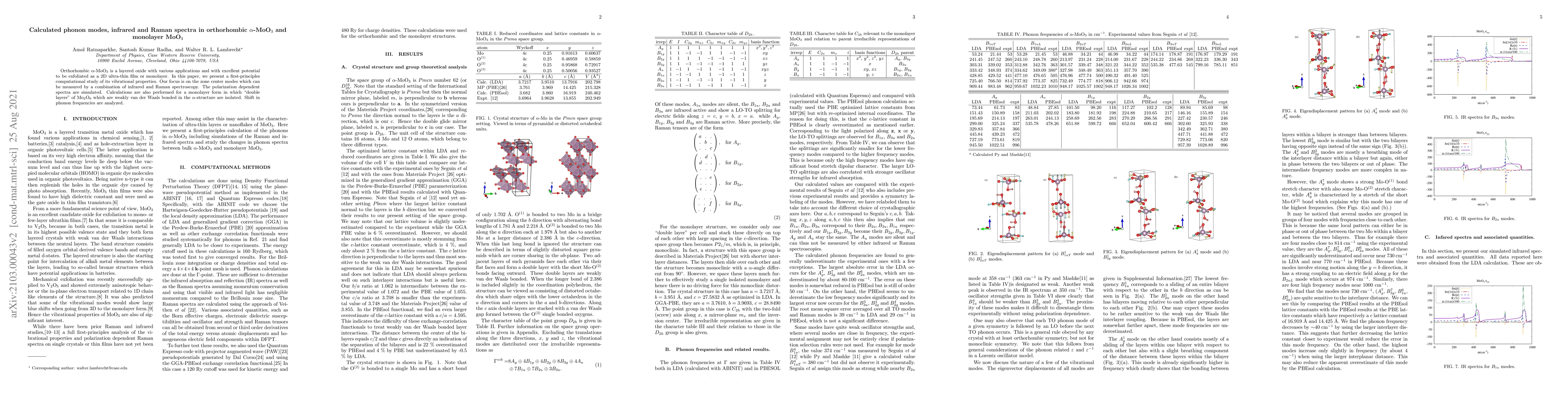 Orhorhombic $\alpha$-MoO$_3$ is a layered oxide with various applications and with excellent potential to be exfoliated as a 2D ultrathin film or monolayer. In this paper, we present a first-principles computational study of its vibrational properties. Our focus is on the zone center modes which can be measured by a combination of infared and Raman spectroscopy. The polarization dependent spectra are simulated. Calculations are also performed for a monolayer form in which "double layers" of Mo$_2$O$_6$ which are weakly van der Waals bonded in the $\alpha$-structure are isolated. Shift in phonon frequencies are analyzed.