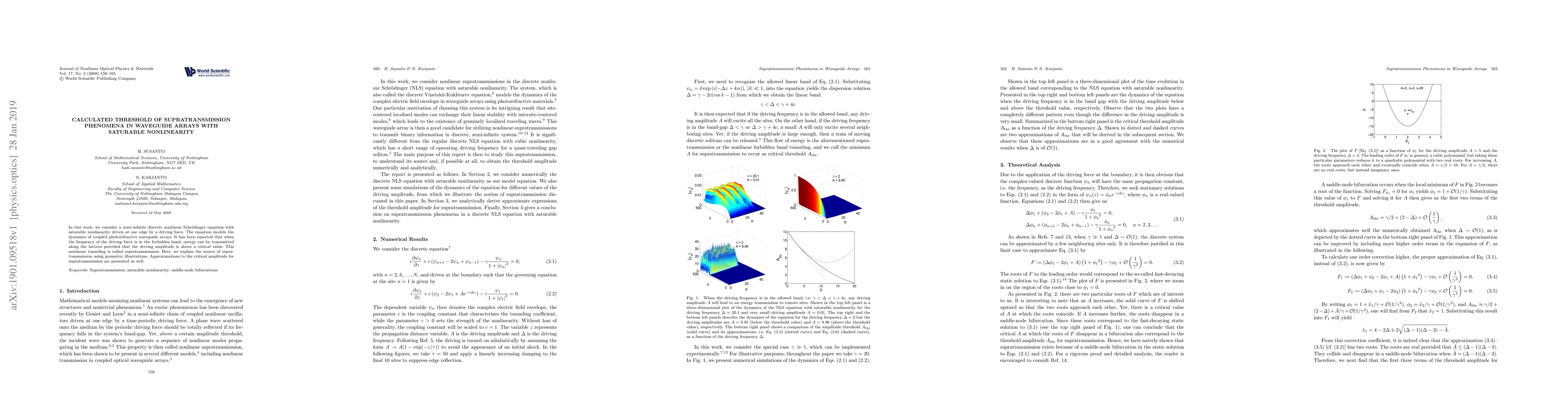 The paper presents a comprehensive analysis of supratransmission phenomena in waveguide arrays with saturable nonlinearity, providing both numerical simulations and analytical approximations for the critical threshold amplitude.