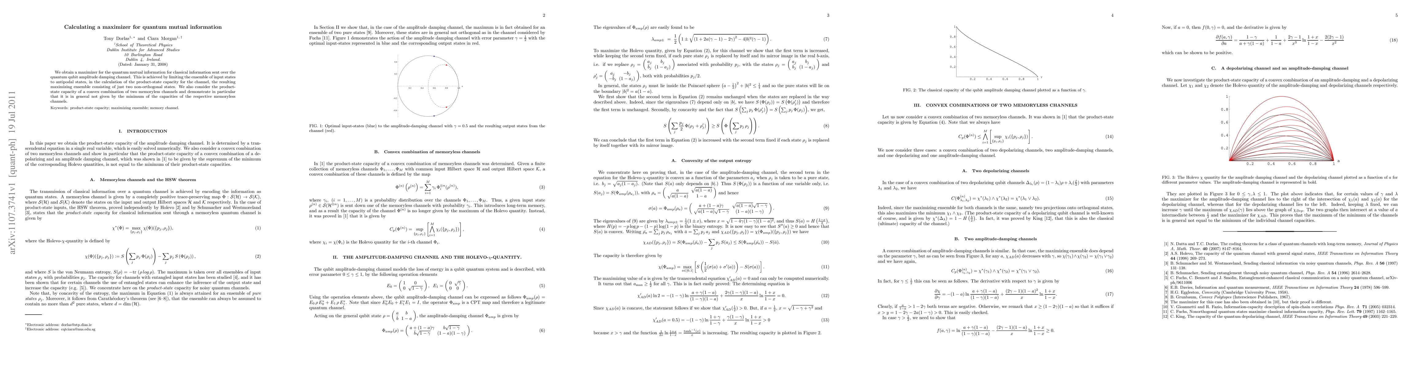 We obtain a maximizer for the quantum mutual information for classical information sent over the quantum qubit amplitude damping channel. This is achieved by limiting the ensemble of input states to antipodal states, in the calculation of the product-state capacity for the channel, the resulting maximizing ensemble consisting of just two non-orthogonal states. We also consider the product-state capacity of a convex combination of two memoryless channels and demonstrate in particular that it is in general not given by the minimum of the capacities of the respective memoryless channels.