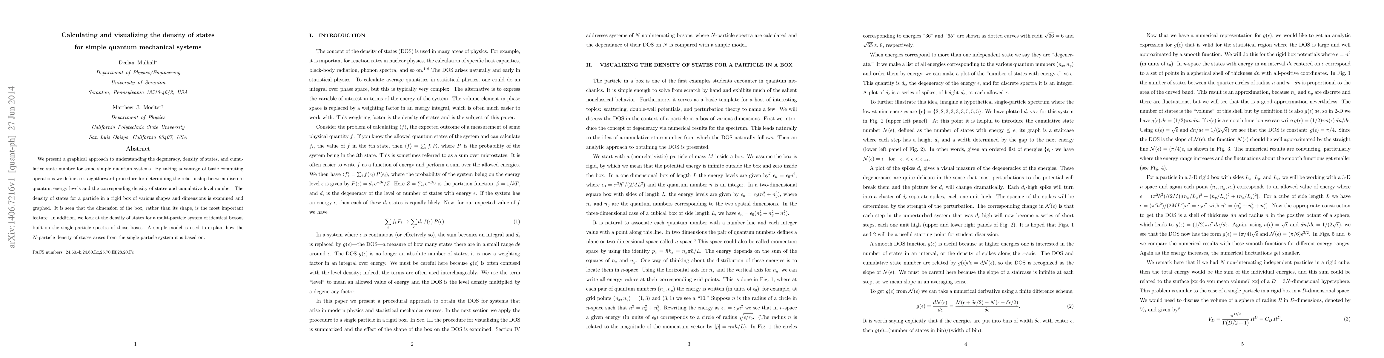 Researchers developed a graphical approach to visualize density of states for simple quantum systems, finding that box dimension, not shape, is the most important feature, and applied this method to a multi-particle system of identical bosons.