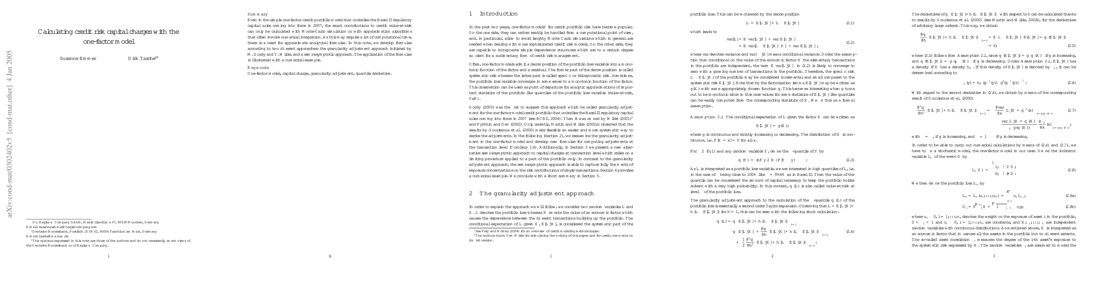 Researchers develop new formulas to estimate credit risk capital charges using the one-factor model, aiming to reduce computational time required for accurate calculations.