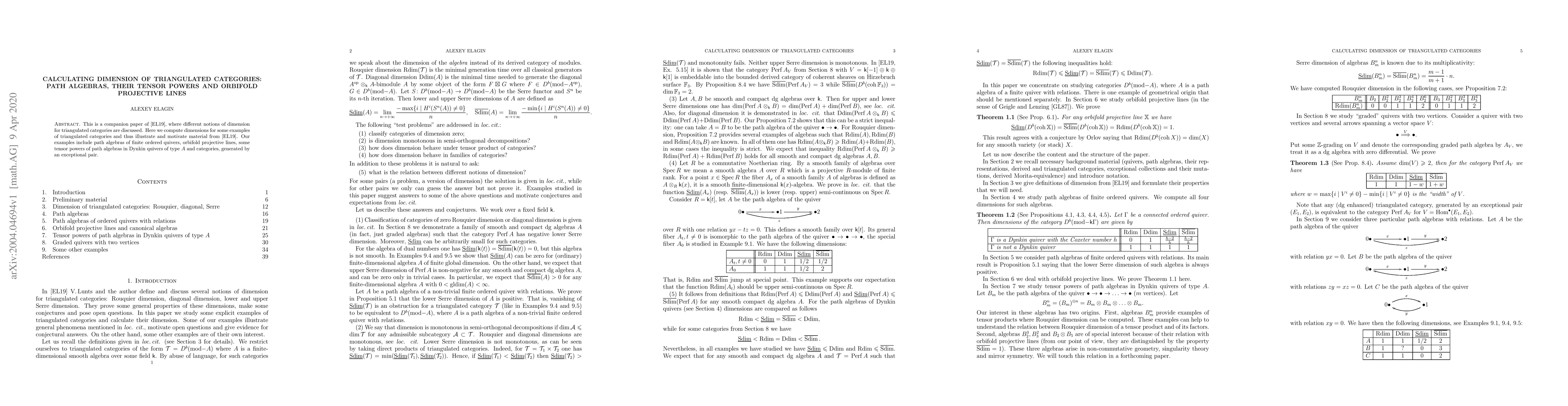 This paper computes dimensions for various triangulated categories, including path algebras, tensor powers of path algebras, and orbifold projective lines, to illustrate concepts from a related work. It serves as a companion to arXiv:1901.09461, providing concrete examples to motivate the discussed notions of dimension.