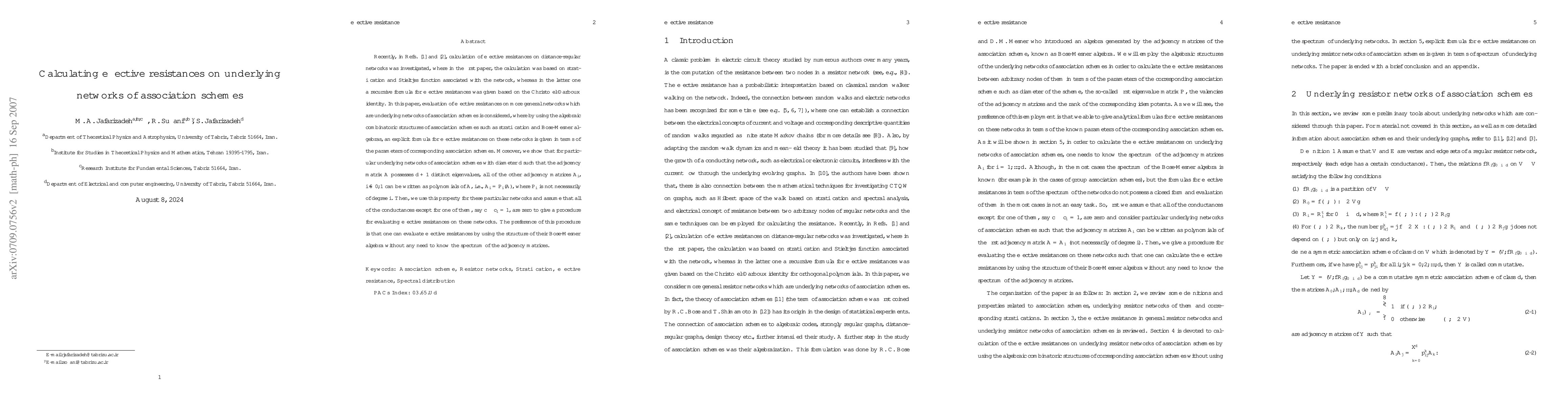 This paper develops an explicit formula for effective resistances on general networks that are underlying association schemes, leveraging algebraic combinatoric structures. It also provides a procedure for evaluating resistances on specific networks where adjacency matrices are polynomial functions of the primary matrix, allowing resistance calculations using Bose-Mesner algebra structures without requiring the full spectrum of adjacency matrices.