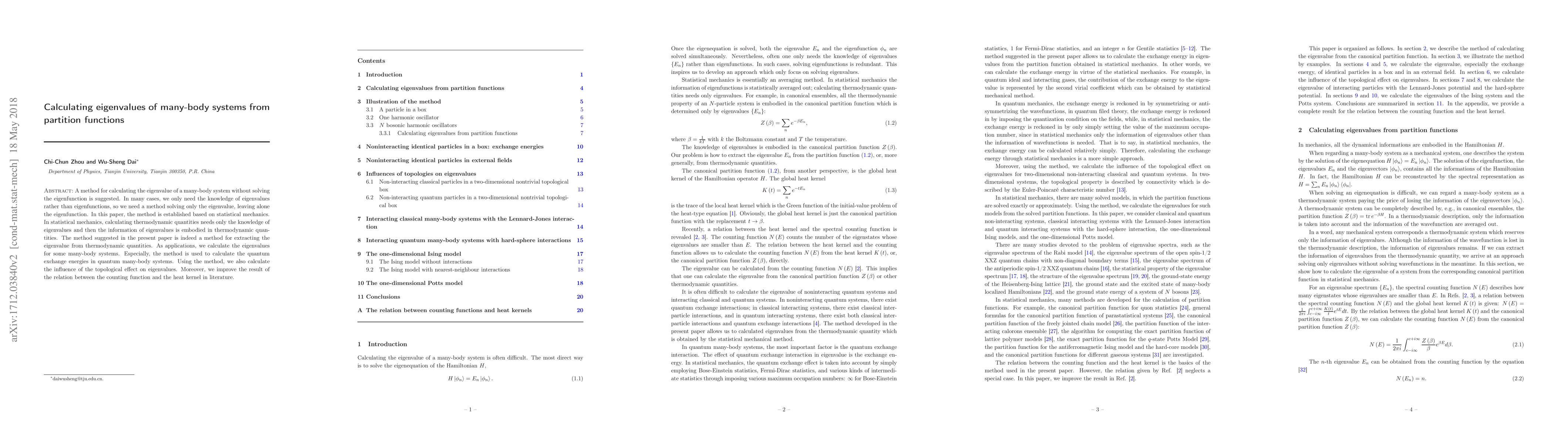 Researchers develop a method to calculate eigenvalues of many-body systems without solving their eigenfunctions, leveraging statistical mechanics and thermodynamic quantities.