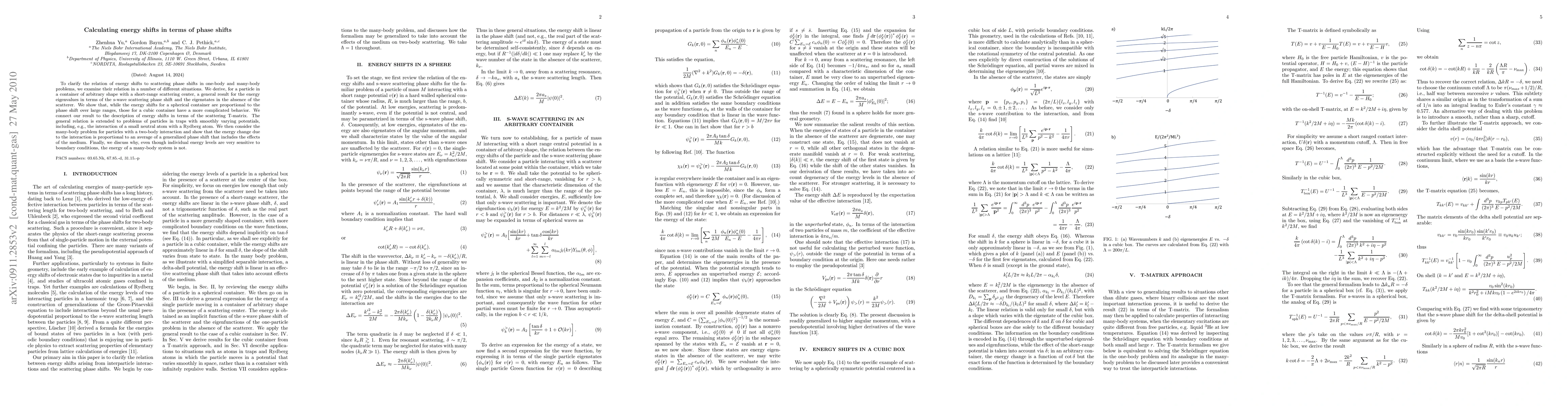 This paper explores the relationship between energy shifts and scattering phase shifts in both one-body and many-body problems. It derives a general expression linking energy eigenvalues to s-wave scattering phase shifts, showing complex behaviors for different container shapes and extending the analysis to interactions in varying potentials and many-body systems.