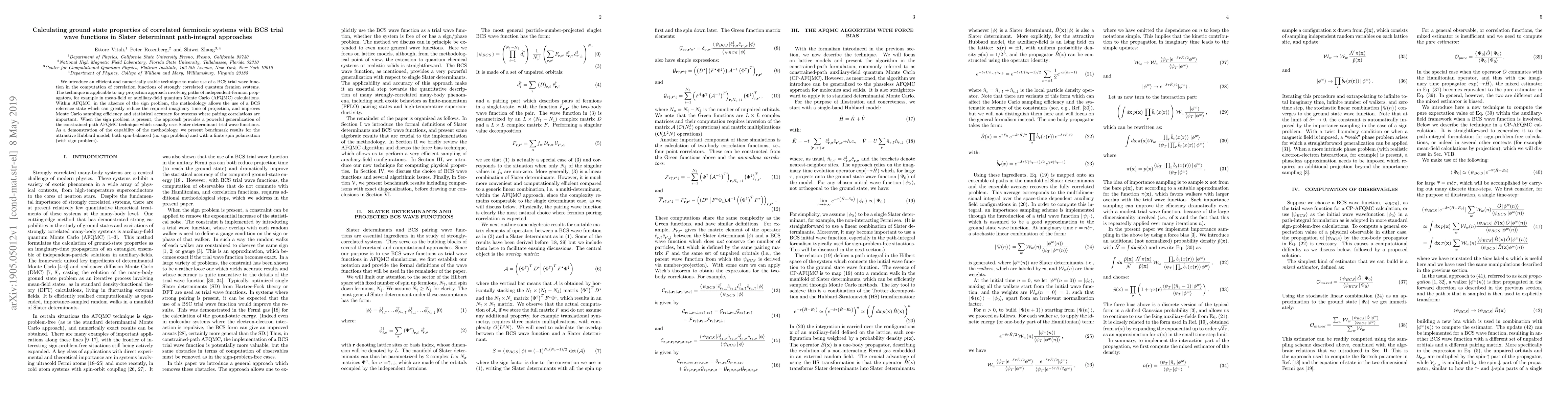 This paper presents a numerically stable method for calculating ground state properties of strongly correlated fermionic systems using BCS trial wave functions in Slater determinant path-integral approaches. The technique enhances Monte Carlo sampling efficiency and statistical accuracy in auxiliary-field quantum Monte Carlo calculations, particularly for systems with significant pairing correlations.
