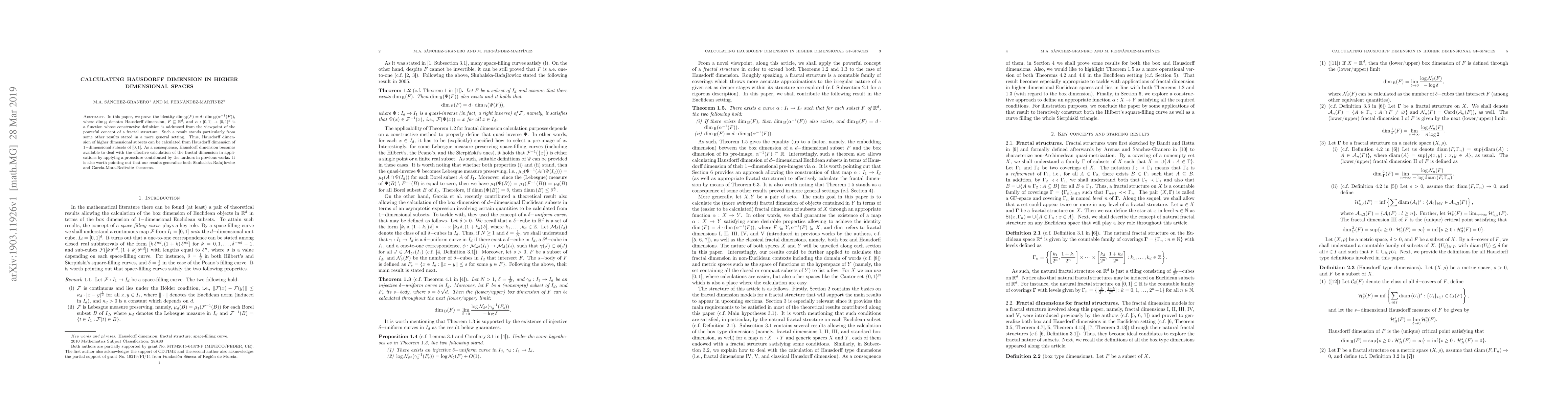 In this paper, we prove the identity $\dim_{\textrm H}(F)=d\cdot \dim_{\textrm H}(\alpha^{-1}(F))$, where $\dim_{\textrm H}$ denotes Hausdorff dimension, $F\subseteq \mathbb{R}^d$, and $\alpha:[0,1]\to [0,1]^d$ is a function whose constructive definition is addressed from the viewpoint of the powerful concept of a fractal structure. Such a result stands particularly from some other results stated in a more general setting. Thus, Hausdorff dimension of higher dimensional subsets can be calculated from Hausdorff dimension of $1-$dimensional subsets of $[0,1]$. As a consequence, Hausdorff dimension becomes available to deal with the effective calculation of the fractal dimension in applications by applying a procedure contributed by the authors in previous works. It is also worth pointing out that our results generalize both Skubalska-Rafaj\l{}owicz and Garc\'{\i}a-Mora-Redtwitz theorems.