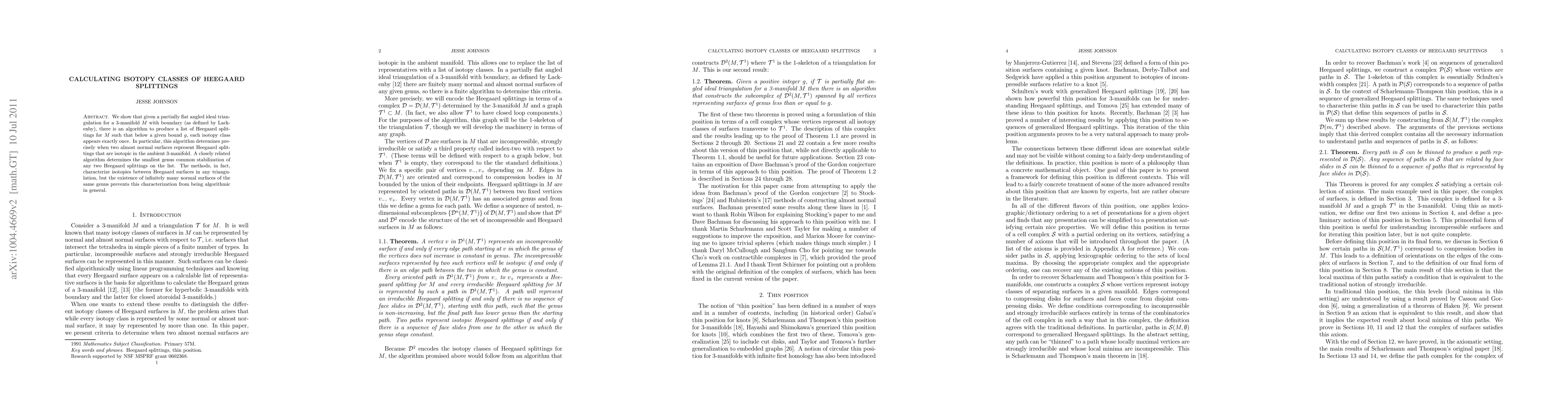 We show that given a partially flat angled ideal triangulation for a 3-manifold $M$ with boundary (as defined by Lackenby), there is an algorithm to produce a list of Heegaard splittings for $M$ such that below a given genus $g$, each isotopy class appears exactly once. In particular, this algorithm determines precisely when two almost normal surfaces represent Heegaard splittings that are isotopic in the ambient 3-manifold. A closely related algorithm determines the smallest genus common stabilization of any two Heegaard splittings on the list. The methods, in fact, characterize isotopies between Heegaard surfaces in any triangulation, but the existence of infinitely many normal surfaces of the same genus prevents this characterization from being algorithmic in general.