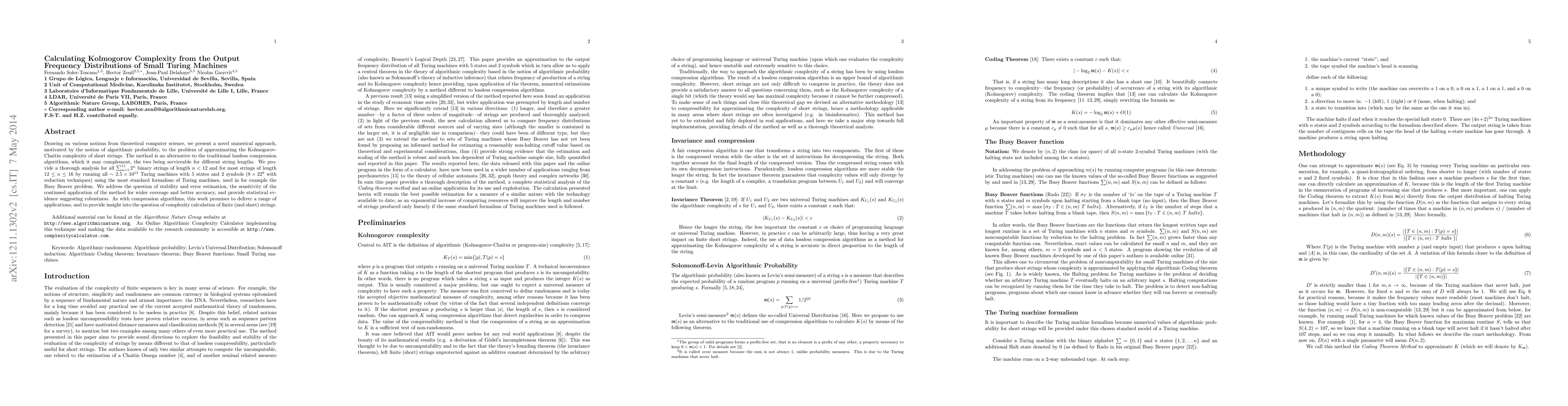 Researchers developed a method to approximate Kolmogorov complexity using output frequency distributions of small Turing machines, providing insight into the calculation of finite strings.