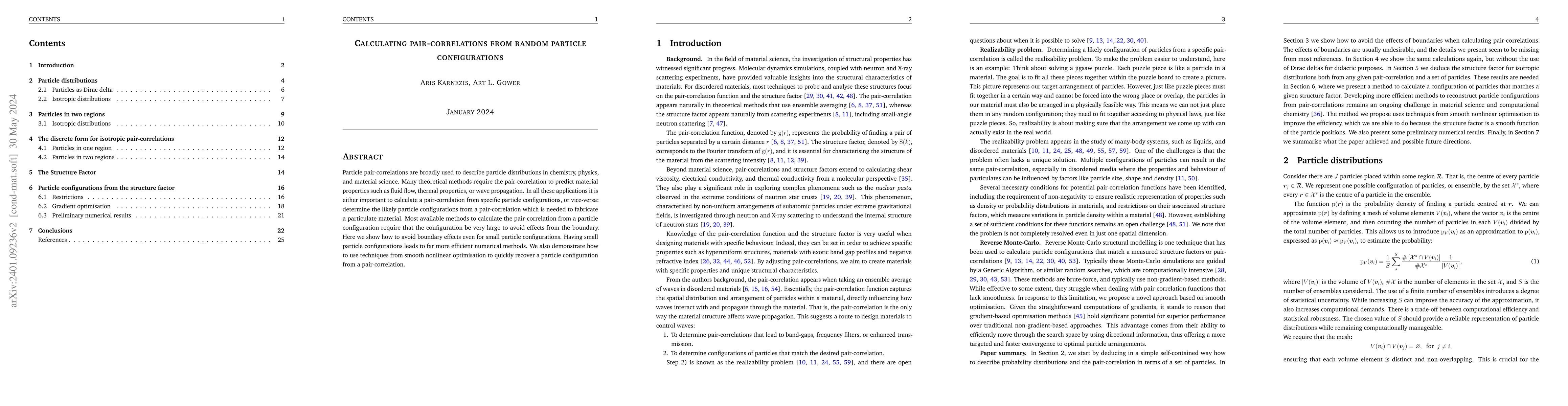 Particle pair-correlations are broadly used to describe particle distributions in chemistry, physics, and material science. Many theoretical methods require the pair-correlation to predict material properties such as fluid flow, thermal properties, or wave propagation. In all these applications it is either important to calculate a pair-correlation from specific particle configurations, or vice-versa: determine the likely particle configurations from a pair-correlation which is needed to fabricate a particulate material. Most available methods to calculate the pair-correlation from a particle configuration require that the configuration be very large to avoid effects from the boundary. Here we show how to avoid boundary effects even for small particle configurations. Having small particle configurations leads to far more efficient numerical methods. We also demonstrate how to use techniques from smooth nonlinear optimisation to quickly recover a particle configuration from a pair-correlation.