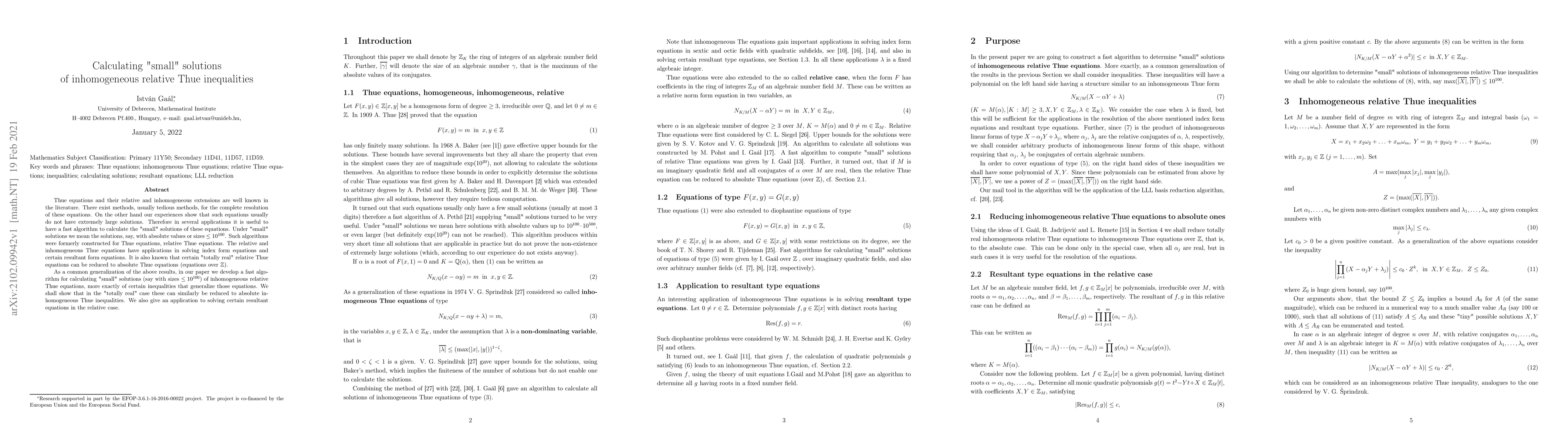 Thue equations and their relative and inhomogeneous extensions are well known in the literature. There exist methods, usually tedious methods, for the complete resolution of these equations. On the other hand our experiences show that such equations usually do not have extremely large solutions. Therefore in several applications it is useful to have a fast algorithm to calculate the "small" solutions of these equations. Under "small" solutions we mean the solutions, say, with absolute values or sizes $\leq 10^{100}$. Such algorithms were formerly constructed for Thue equations, relative Thue equations. The relative and inhomogeneous Thue equations have applications in solving index form equations and certain resultant form equations. It is also known that certain "totally real" relative Thue equations can be reduced to absolute Thue equations (equations over $\Bbb Z$). As a common generalization of the above results, in our paper we develop a fast algorithm for calculating "small" solutions (say with sizes $\leq 10^{100}$) of inhomogeneous relative Thue equations, more exactly of certain inequalities that generalize those equations. We shall show that in the "totally real" case these can similarly be reduced to absolute inhomogeneous Thue inequalities. We also give an application to solving certain resultant equations in the relative case.