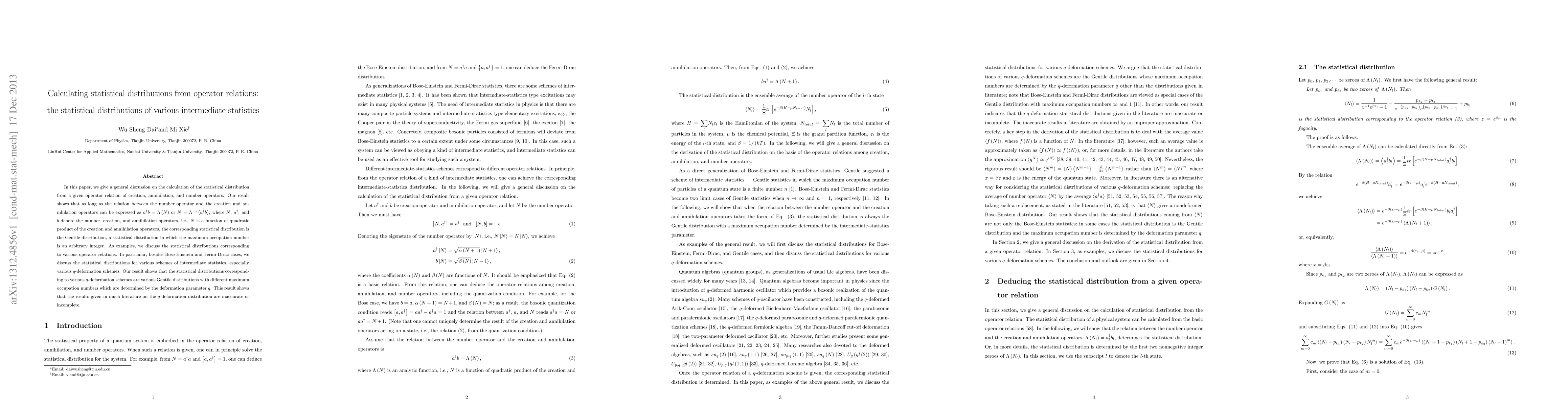 This paper shows that statistical distributions can be calculated from operator relations in quantum mechanics, resulting in various Gentile distributions with different maximum occupation numbers depending on the deformation parameter q.