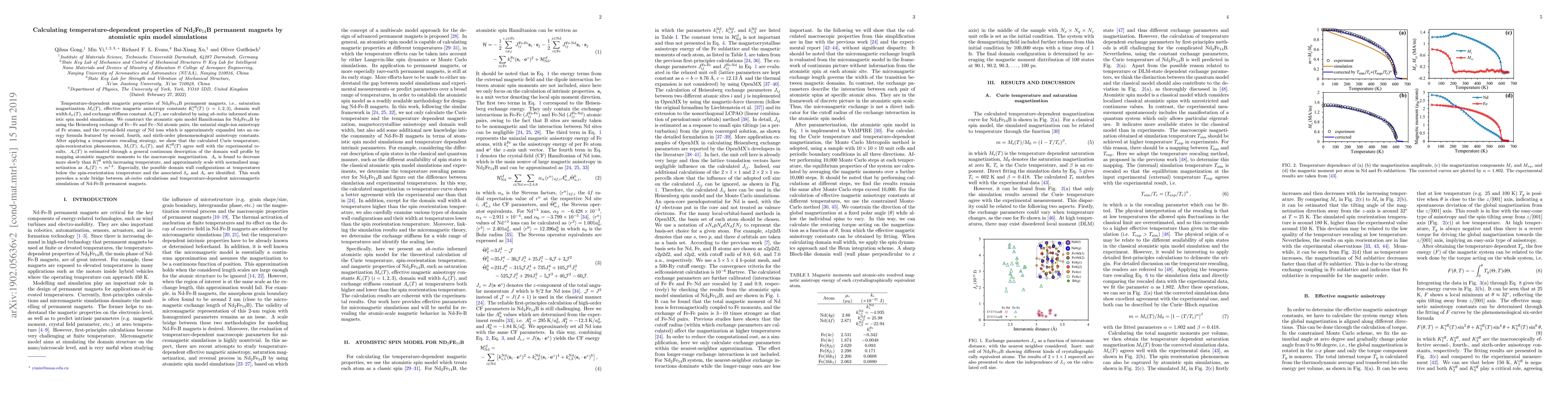 This paper calculates temperature-dependent magnetic properties of Nd$_2$Fe$_{14}$B permanent magnets using \textit{ab-initio} informed atomistic spin model simulations. It shows good agreement between calculated and experimental results for saturation magnetization, anisotropy constants, and domain wall width, revealing that the exchange stiffness constant decreases slowly with temperature.