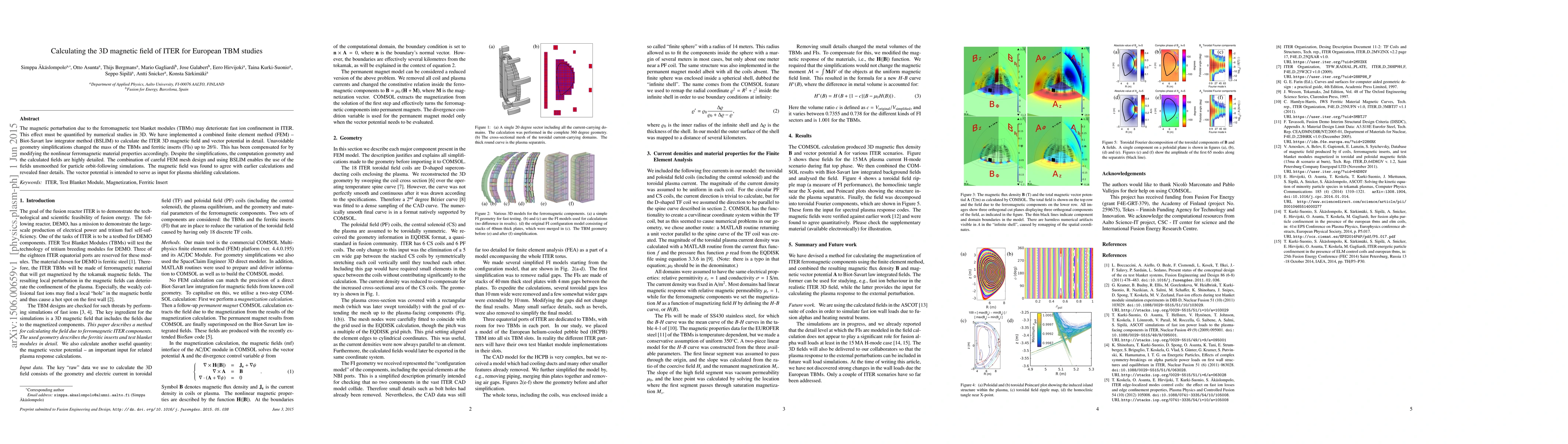 This paper presents a combined finite element method and Biot-Savart law integrator method to calculate the 3D magnetic field in ITER, accounting for ferromagnetic test blanket modules. Despite geometry simplifications, the detailed magnetic field and vector potential are suitable for particle orbit simulations and plasma shielding calculations.