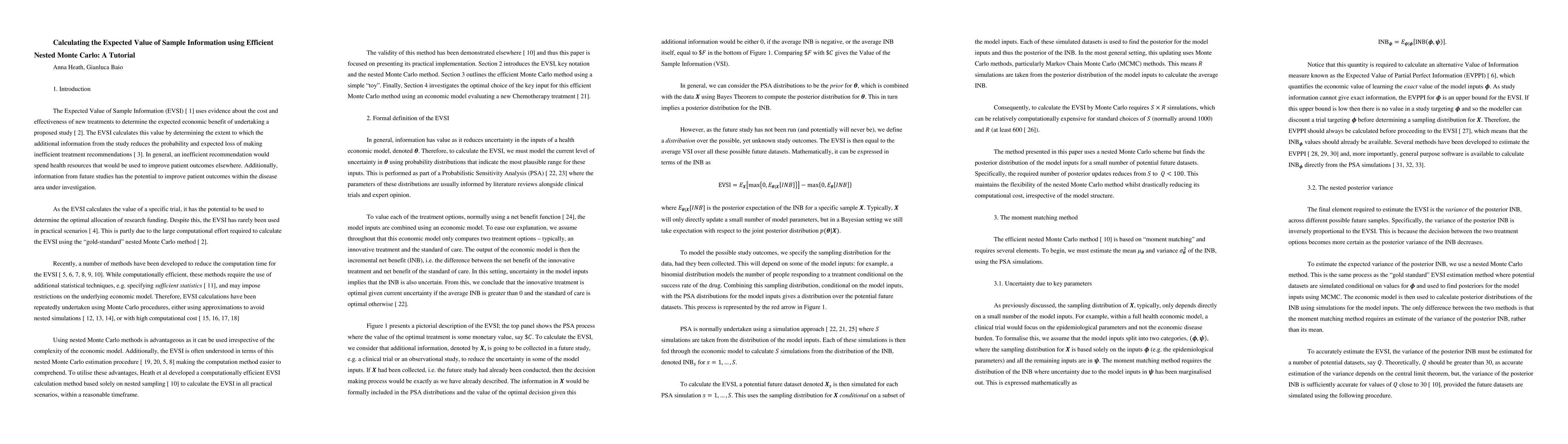 The study presents a practical application of a new method to estimate the Expected Value of Sample Information (EVSI) using Efficient Nested Monte Carlo.