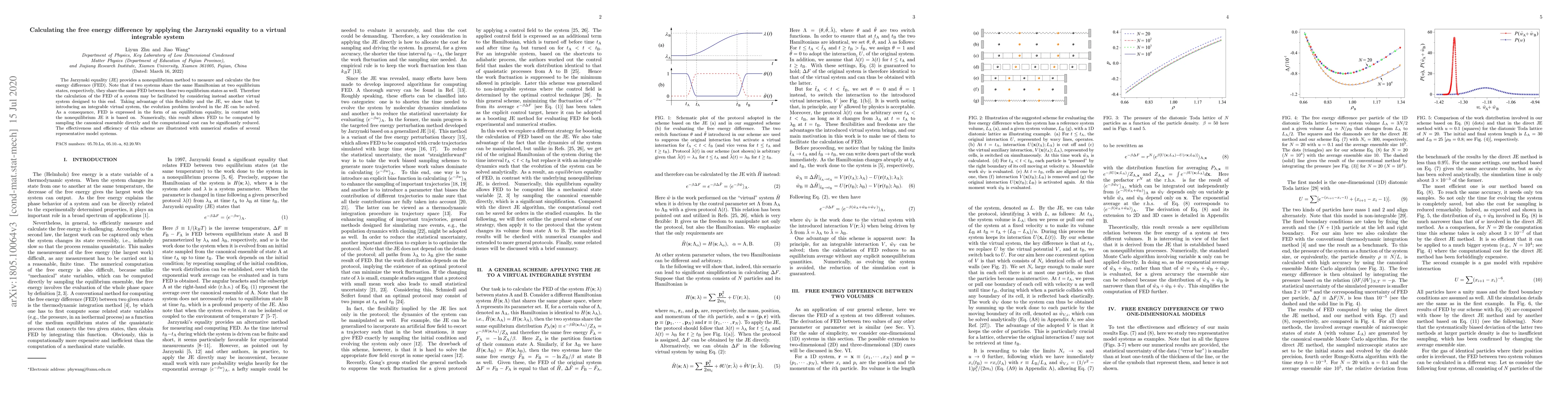 This paper demonstrates a method to calculate the free energy difference using the Jarzynski equality by introducing an integrable virtual system. This approach transforms the nonequilibrium problem into an equilibrium one, allowing for direct sampling of the canonical ensemble and significantly reducing computational costs.