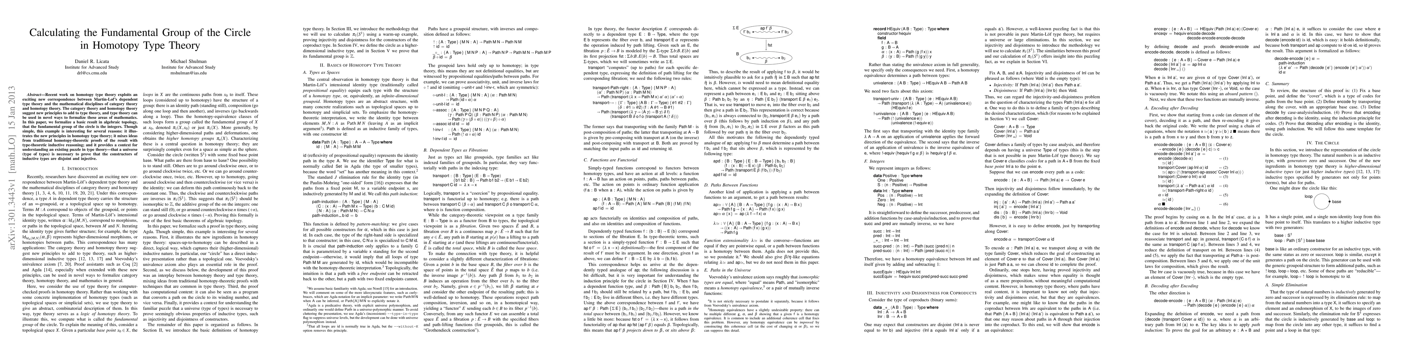 This paper formalizes the fundamental group of the circle as the integers using homotopy type theory, illustrating new principles and combining homotopy-theoretic proofs with type-theoretic inductive reasoning. It also addresses a puzzle in type theory regarding the necessity of a universe for proving properties of inductive types.