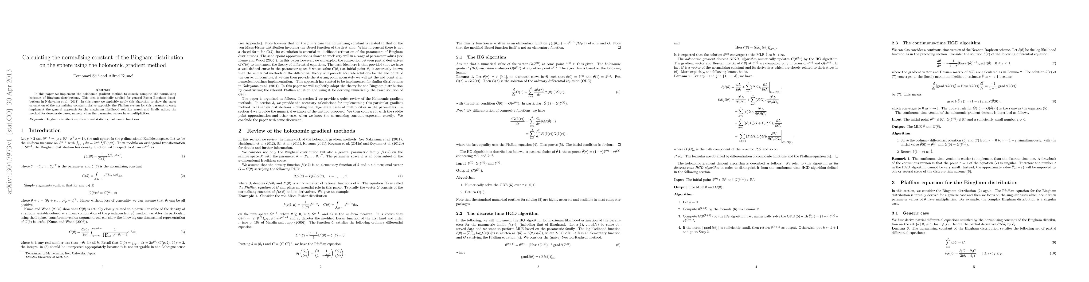 In this paper we implement the holonomic gradient method to exactly compute the normalising constant of Bingham distributions. This idea is originally applied for general Fisher-Bingham distributions in Nakayama et al. (2011). In this paper we explicitly apply this algorithm to show the exact calculation of the normalising constant; derive explicitly the Pfaffian system for this parametric case; implement the general approach for the maximum likelihood solution search and finally adjust the method for degenerate cases, namely when the parameter values have multiplicities.
