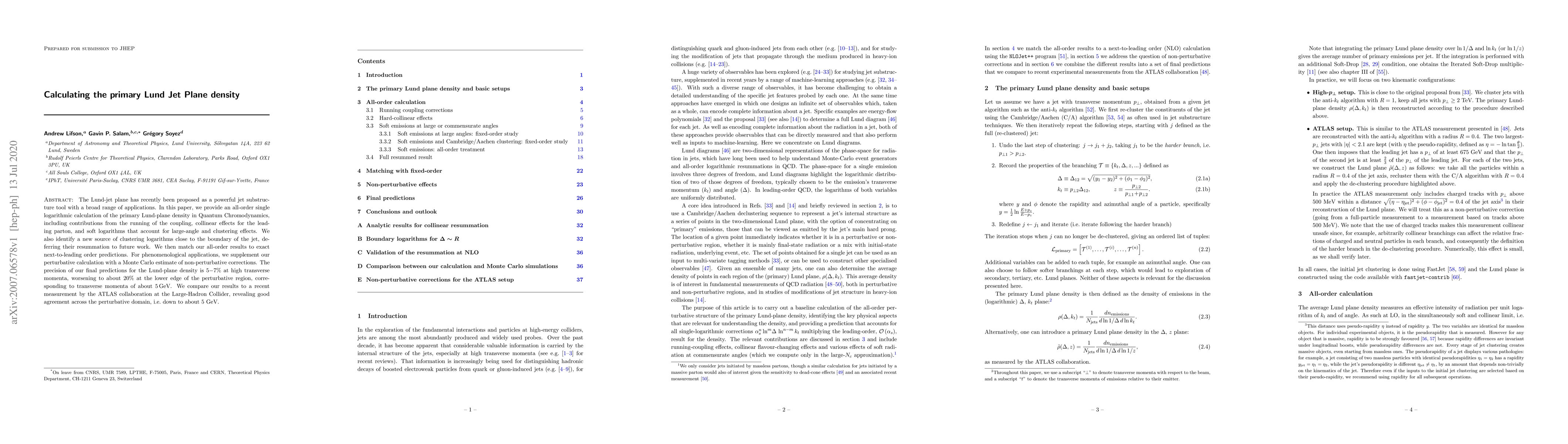 This paper calculates the primary Lund-jet plane density in Quantum Chromodynamics, incorporating all-order single logarithmic contributions and matching them to next-to-leading order predictions. It also estimates non-perturbative corrections and finds good agreement with ATLAS collaboration measurements at the Large Hadron Collider.