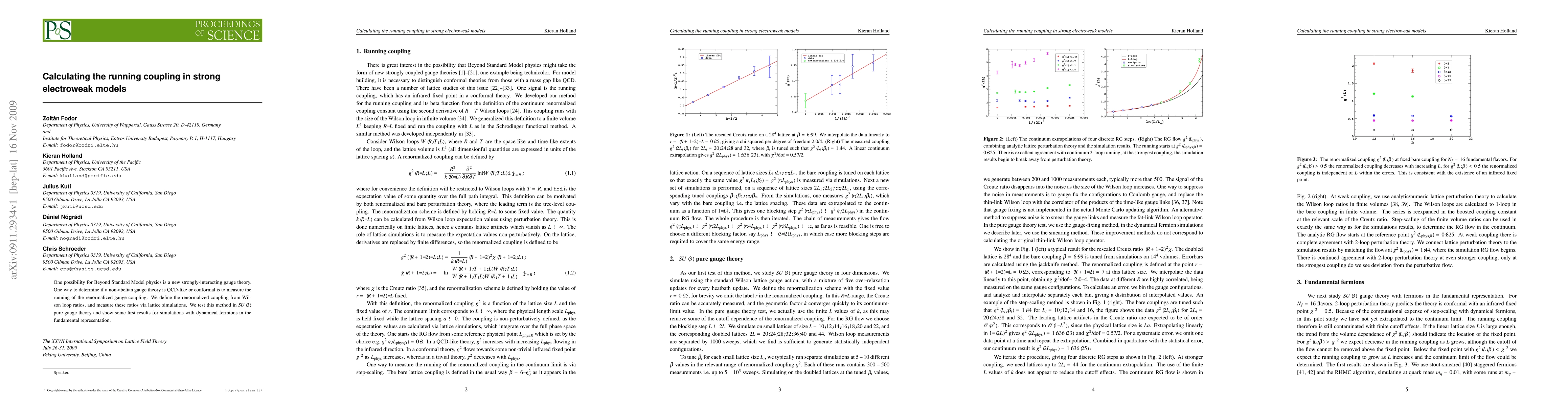 This paper investigates the running of the renormalized gauge coupling in strongly-interacting electroweak models, using lattice simulations to define the coupling from Wilson loop ratios and testing the method in SU(3) pure gauge theory with initial results from simulations including dynamical fermions.