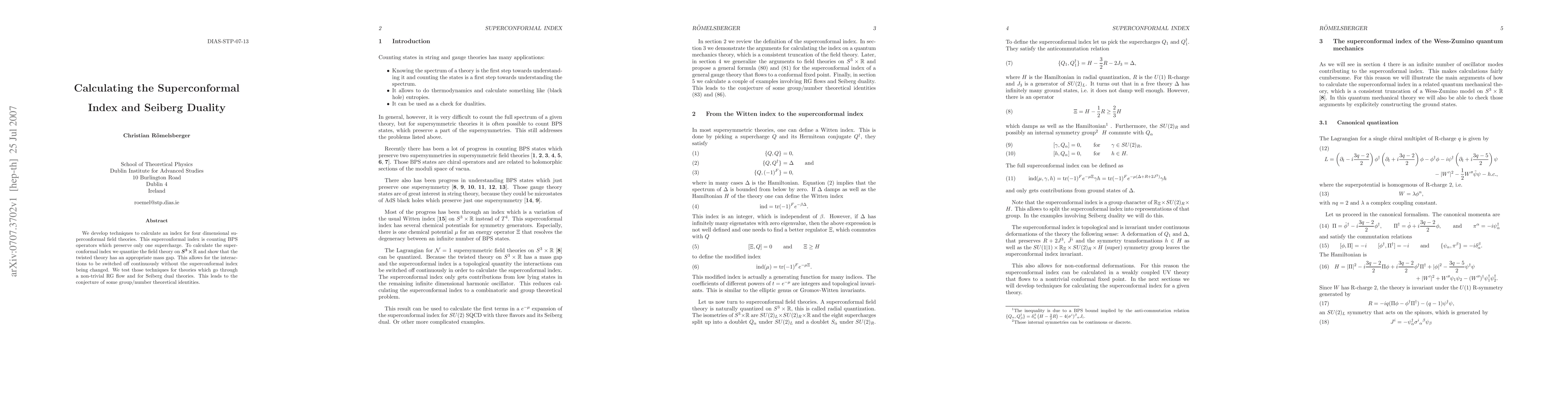 This paper develops methods for calculating the superconformal index in four-dimensional superconformal field theories by quantizing on S^3 X R and showing a mass gap, enabling interactions to be turned off without changing the index. The techniques are tested on non-trivial RG flows and Seiberg dual theories, leading to new group/number theoretical identities.