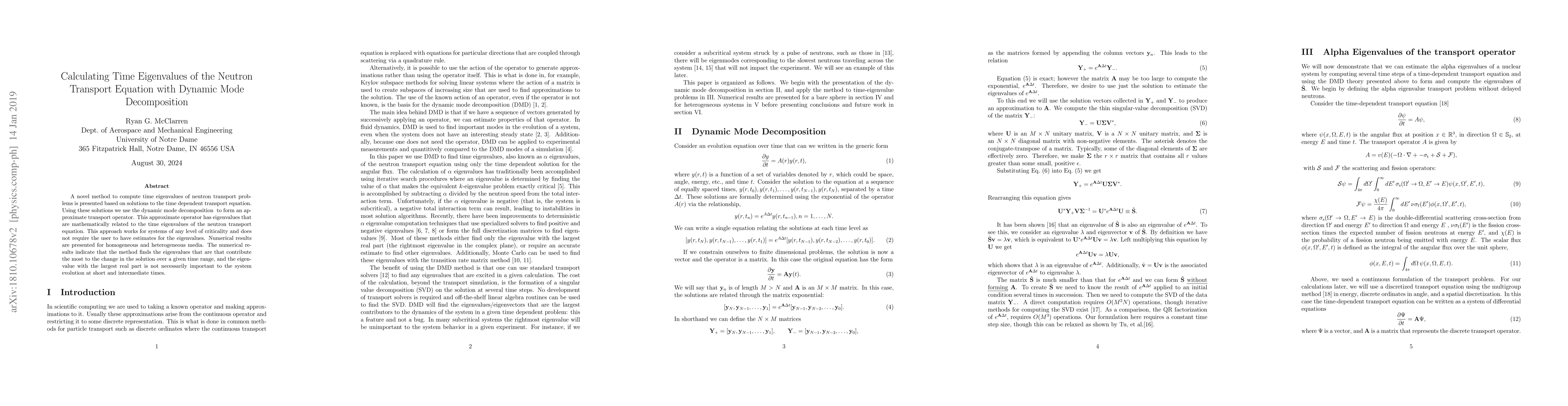 The paper introduces an innovative approach to approximate neutron transport operator eigenvalues using DMD, providing a computationally efficient alternative to traditional eigenvalue solve methods.