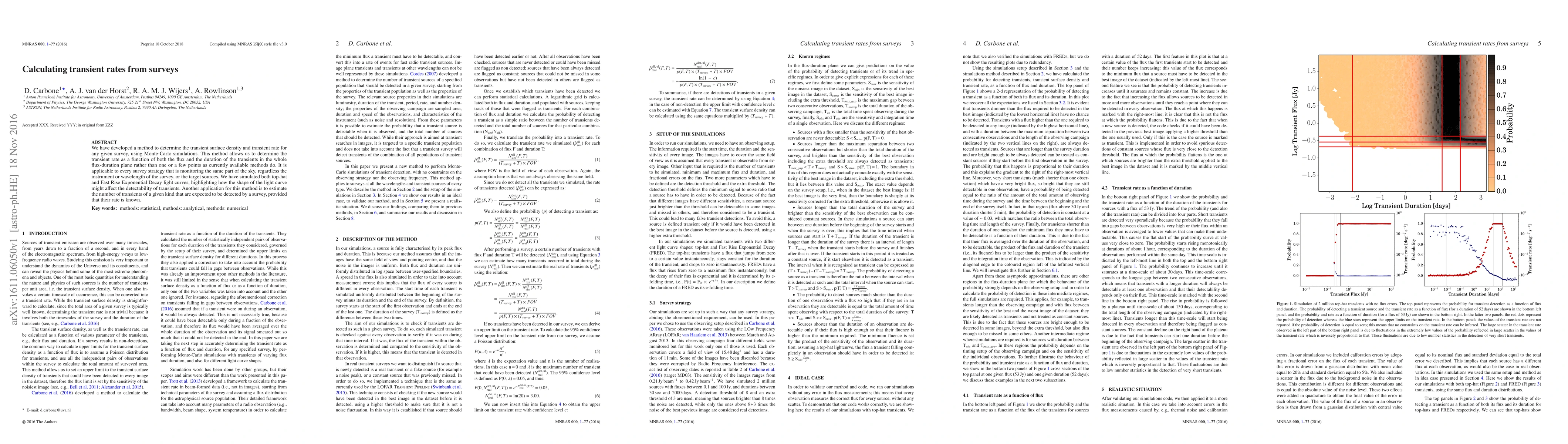We have developed a method to determine the transient surface density and transient rate for any given survey, using Monte-Carlo simulations. This method allows us to determine the transient rate as a function of both the flux and the duration of the transients in the whole flux-duration plane rather than one or a few points as currently available methods do. It is applicable to every survey strategy that is monitoring the same part of the sky, regardless the instrument or wavelength of the survey, or the target sources. We have simulated both top-hat and Fast Rise Exponential Decay light curves, highlighting how the shape of the light curve might affect the detectability of transients. Another application for this method is to estimate the number of transients of a given kind that are expected to be detected by a survey, provided that their rate is known.