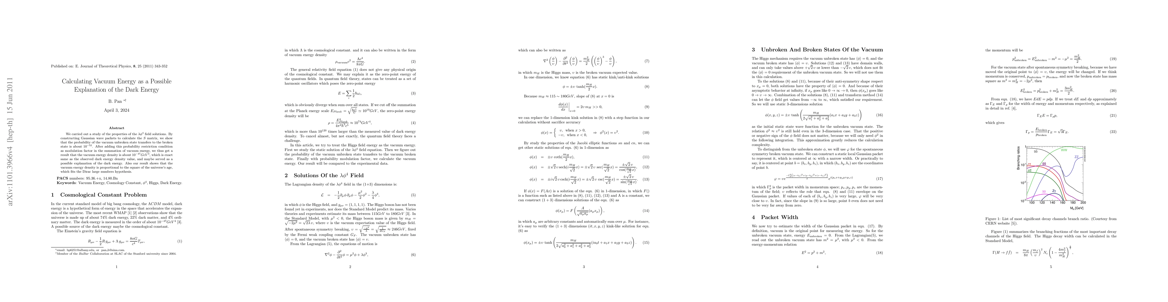 This study investigates the $\lambda \phi^4$ field solutions to determine if vacuum energy could explain dark energy. The calculated vacuum energy density, modulated by a probability factor, matches the observed dark energy density, suggesting a possible explanation for dark energy.