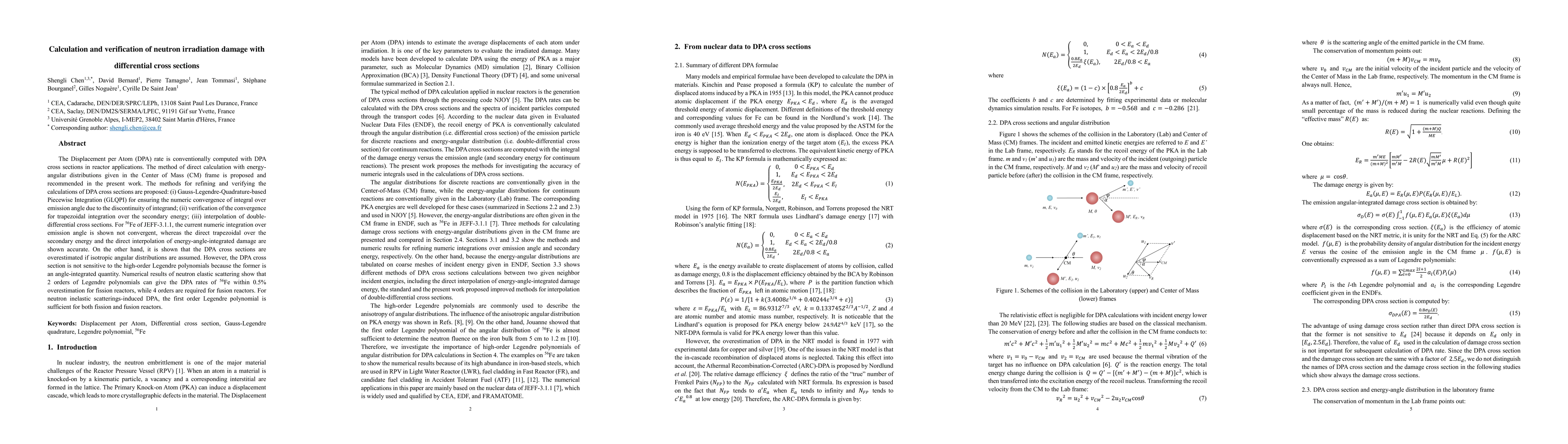 The Displacement per Atom (DPA) rate is conventionally computed with DPA cross sections in reactor applications. The method of direct calculation with energy-angular distributions given in the Center of Mass (CM) frame is proposed and recommended in the present work. The methods for refining and verifying the calculations of DPA cross sections are proposed: (i) Gauss-Legendre-Quadrature-based Piecewise Integration (GLQPI) for ensuring the numeric convergence of integral over emission angle due to the discontinuity of integrand; (ii) verification of the convergence for trapezoidal integration over the secondary energy; (iii) interpolation of double-differential cross sections. For 56Fe of JEFF-3.1.1, the current numeric integration over emission angle is shown not convergent, whereas the direct trapezoidal over the secondary energy and the direct interpolation of energy-angle-integrated damage are shown accurate. On the other hand, it is shown that the DPA cross sections are overestimated if isotropic angular distributions are assumed. However, the DPA cross section is not sensitive to the high-order Legendre polynomials because the former is an angle-integrated quantity. Numerical results of neutron elastic scattering show that 2 orders of Legendre polynomials can give the DPA rates of 56Fe within 0.5% overestimation for fission reactors, while 4 orders are required for fusion reactors. For neutron inelastic scatterings-induced DPA, the first order Legendre polynomial is sufficient for both fission and fusion reactors.