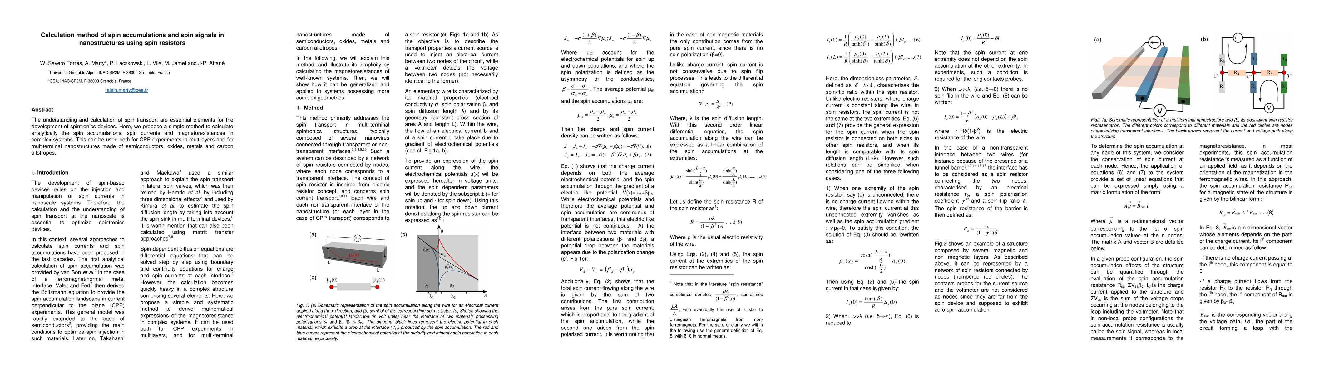 This paper proposes an analytical method to calculate spin accumulations, currents, and magnetoresistances in nanostructures, applicable to various materials and configurations, aiding the development of spintronics devices. The method is designed for both CPP experiments and multiterminal nanostructures.