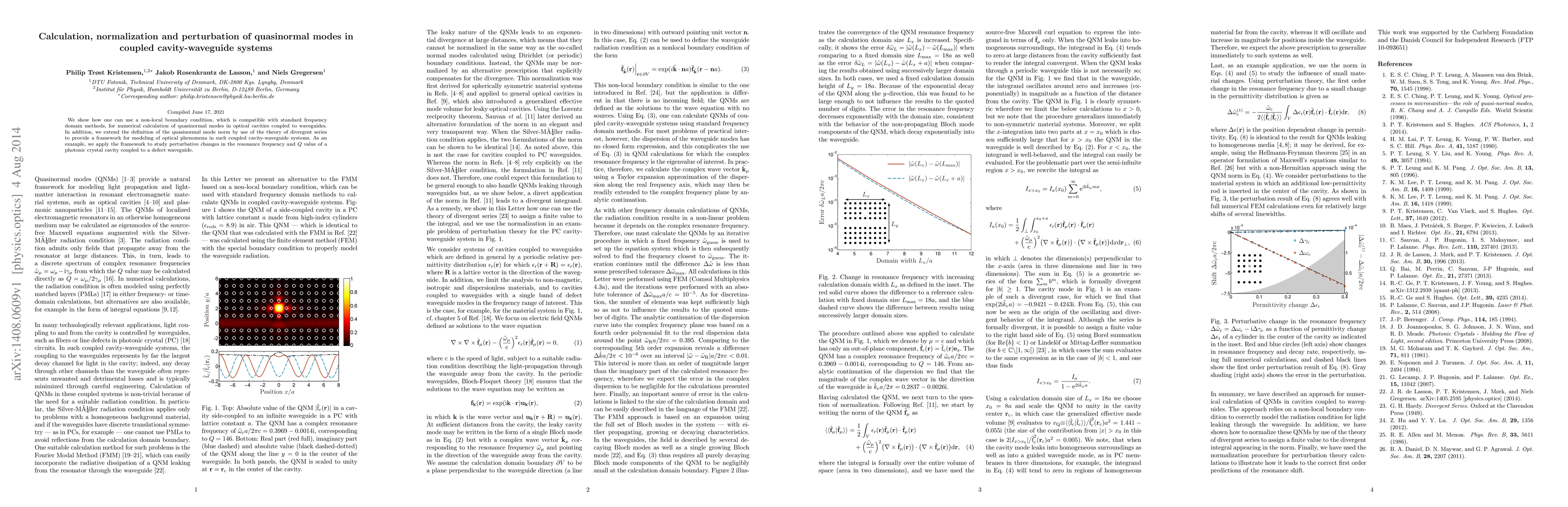 This paper presents a method for calculating quasinormal modes in optical cavities coupled to waveguides using non-local boundary conditions. It also normalizes these modes using divergent series theory and applies the framework to analyze perturbative changes in a photonic crystal cavity-waveguide system.