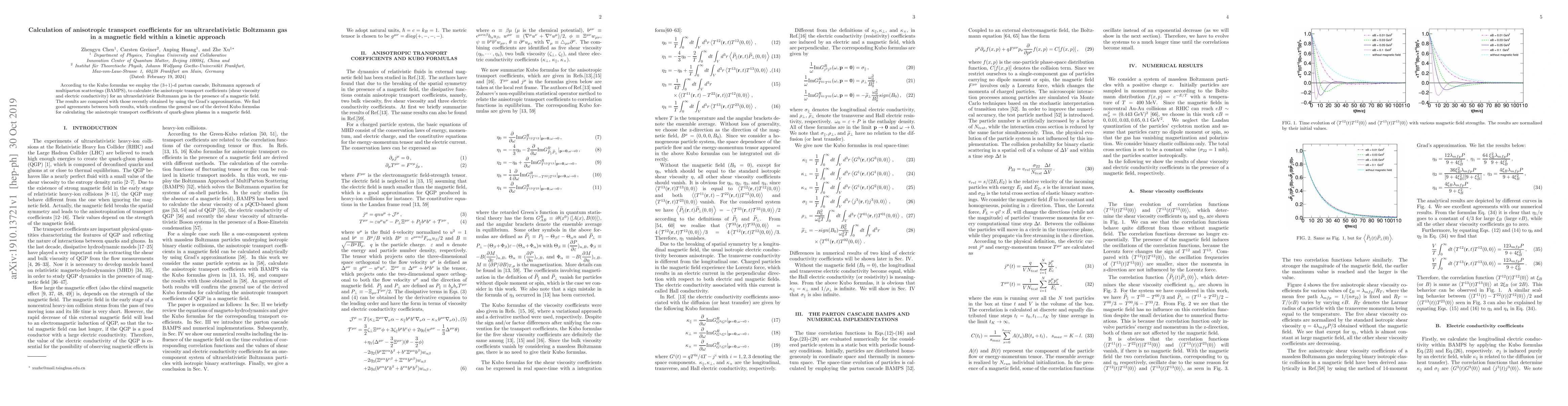 This paper calculates anisotropic transport coefficients for an ultrarelativistic Boltzmann gas in a magnetic field using the BAMPS approach, finding good agreement with results from Grad's approximation, thus validating the Kubo formulas for quark-gluon plasma in magnetic fields.