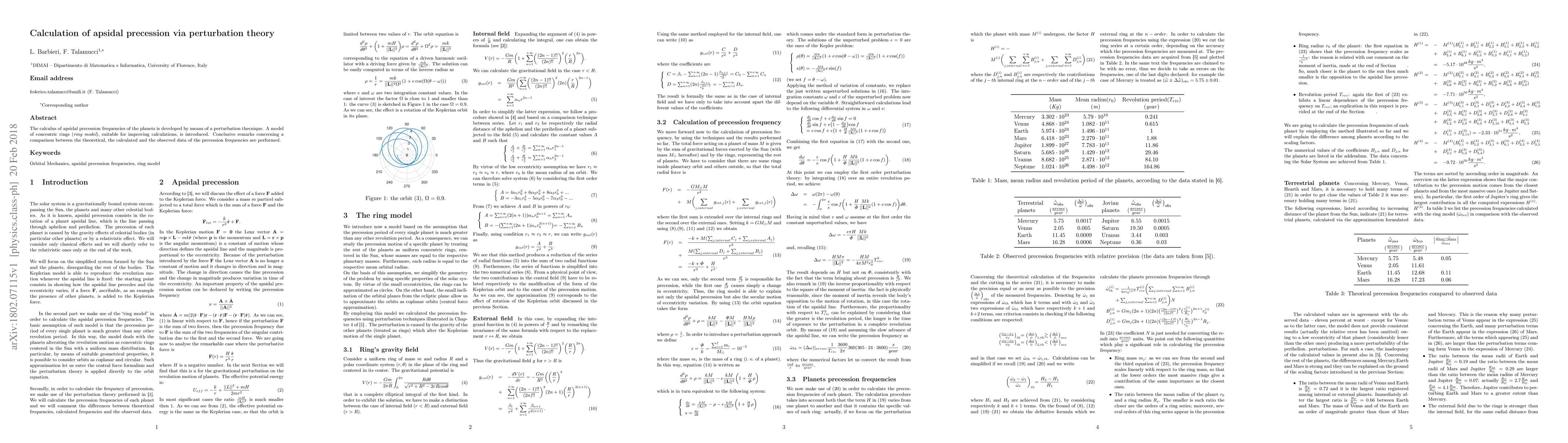 This paper develops a perturbation theory to calculate apsidal precession frequencies of planets using a concentric ring model for enhanced accuracy. It concludes with a comparison between theoretical calculations and observed precession frequency data.