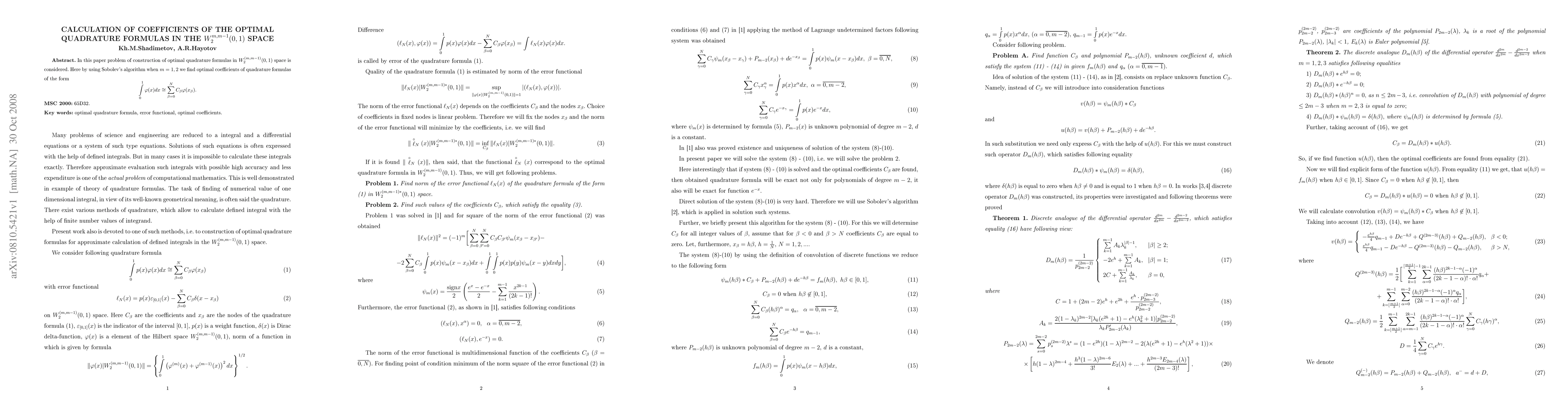 In this paper problem of construction of optimal quadrature formulas in $W_2^{(m,m-1)}(0,1)$ space is considered. Here by using Sobolev's algorithm when $m=1,2$ we find the optimal coefficients of the quadrature formulas of the form $$ \int\limits_0^1\phi(x)dx\cong \sum\limits_{\beta=0}^NC_{\beta}\phi(x_{\beta}). $$