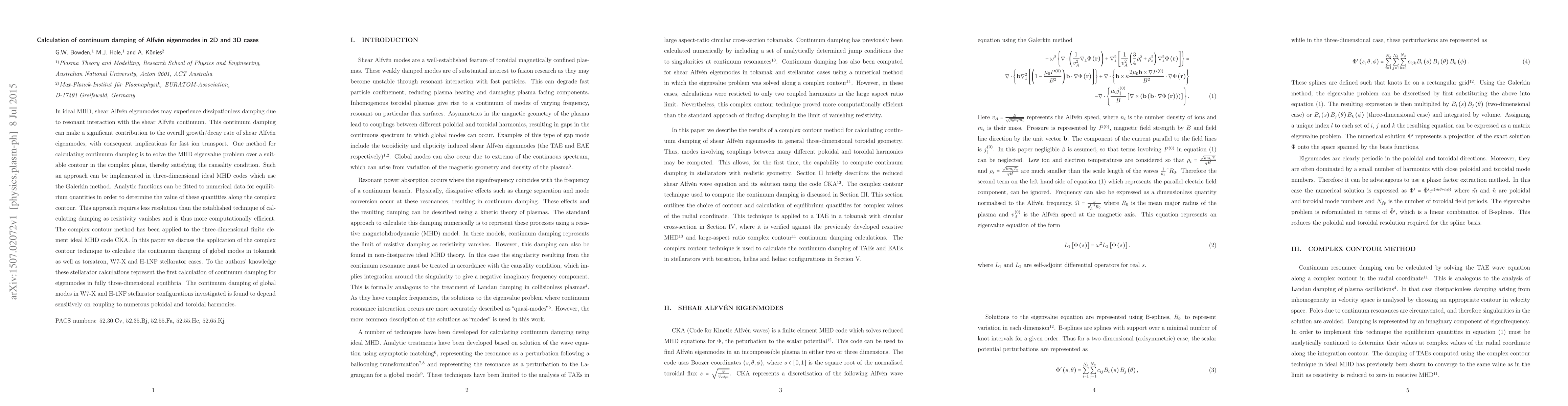 The study calculates continuum damping of Alfvén eigenmodes in 2D and 3D cases using a new method that is more computationally efficient than existing techniques, with significant implications for fast ion transport in tokamaks and stellarators.