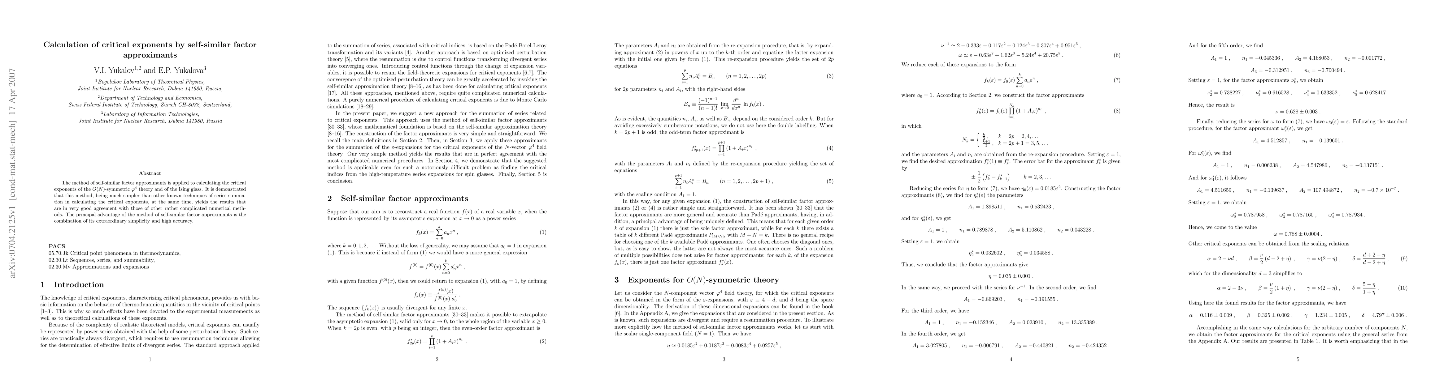 The introduction and application of self-similar factor approximants as a novel method for calculating critical exponents with high accuracy and simplicity.