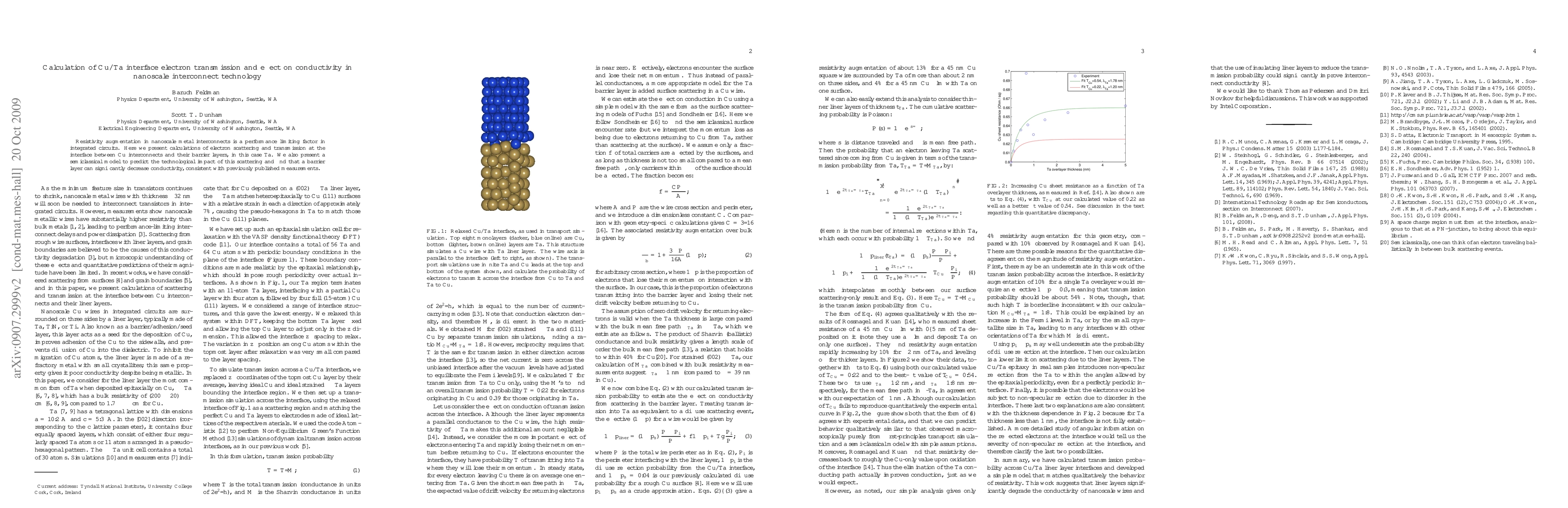 Resistivity augmentation in nanoscale metal interconnects is a performance limiting factor in integrated circuits. Here we present calculations of electron scattering and transmission at the interface between Cu interconnects and their barrier layers, in this case Ta. We also present a semiclassical model to predict the technological impact of this scattering and find that a barrier layer can significantly decrease conductivity, consistent with previously published measurements.