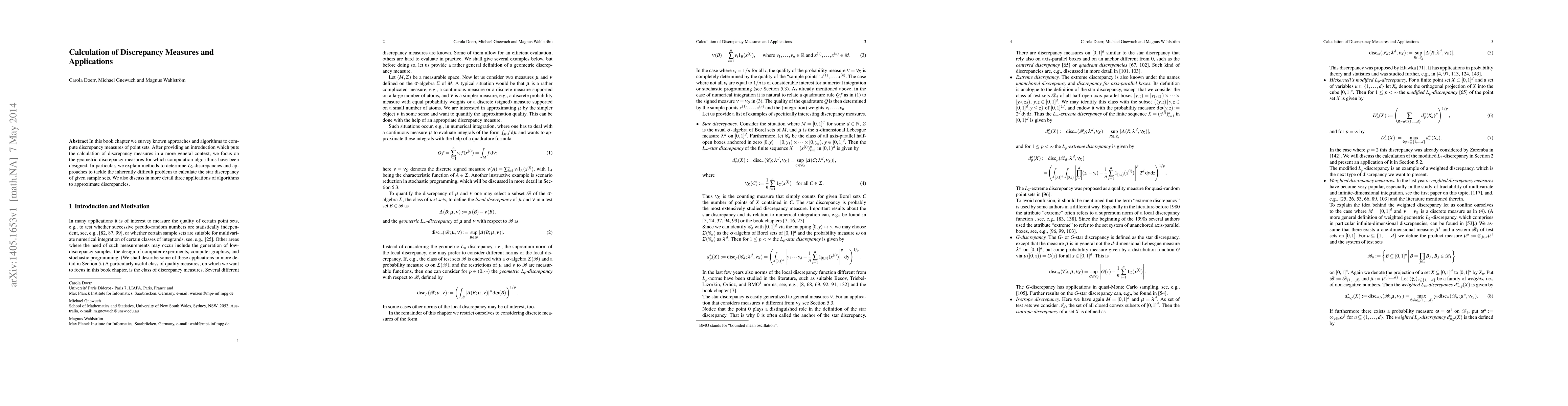 In this book chapter we survey known approaches and algorithms to compute discrepancy measures of point sets. After providing an introduction which puts the calculation of discrepancy measures in a more general context, we focus on the geometric discrepancy measures for which computation algorithms have been designed. In particular, we explain methods to determine $L_2$-discrepancies and approaches to tackle the inherently difficult problem to calculate the star discrepancy of given sample sets. We also discuss in more detail three applications of algorithms to approximate discrepancies.