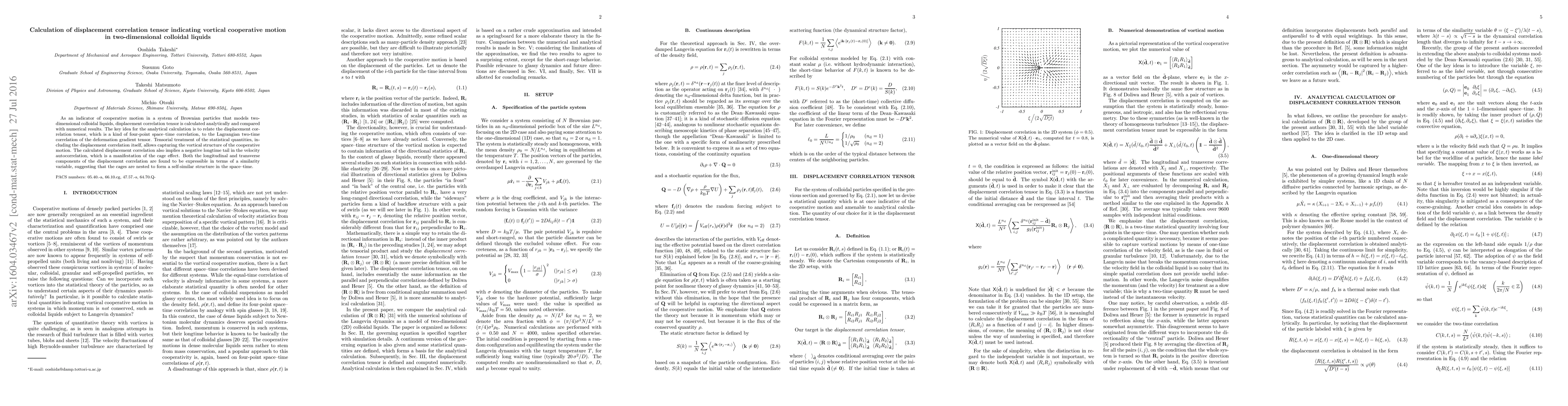 This research analytically calculates the displacement correlation tensor in 2D colloidal liquids, revealing vortical cooperative motion. It links the tensor to the deformation gradient's Lagrangian correlation, showing cage-effect manifestation in negative longtime velocity autocorrelation and self-similar nested cage structures in space-time.