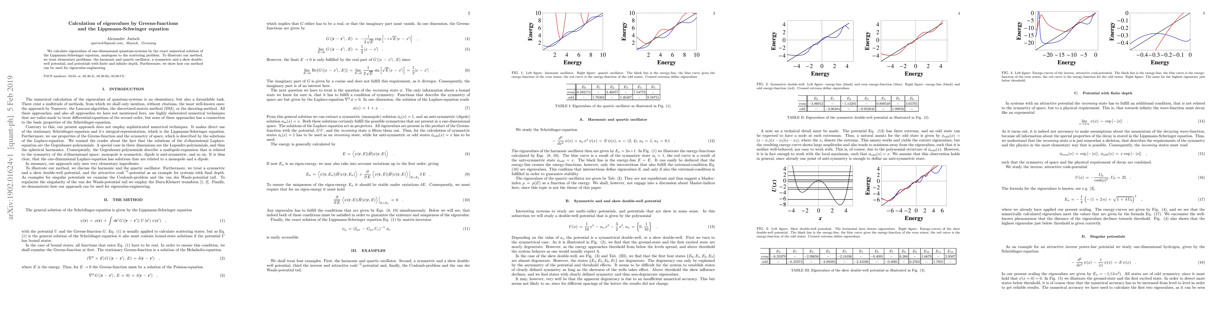We calculate eigenvalues of one-dimensional quantum-systems by the exact numerical solution of the Lippmann-Schwinger equation, analogous to the scattering problem. To illustrate our method, we treat elementary problems: the harmonic and quartic oscillator, a symmetric and a skew double-well potential, and potentials with finite and infinite depth. Furthermore, we show how our method can be used for eigenvalue-engineering.