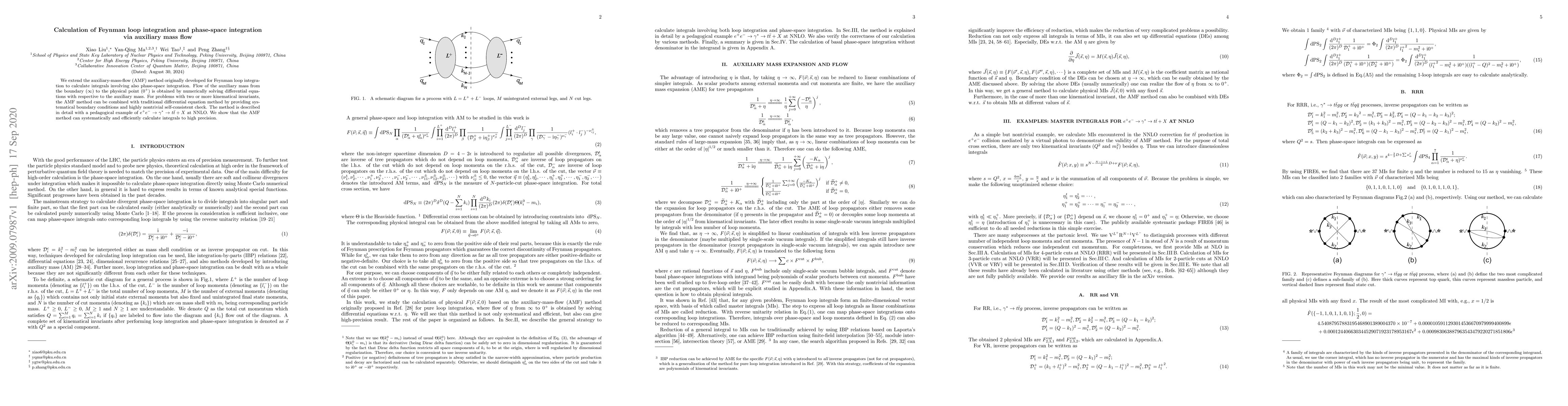 We extend the auxiliary-mass-flow (AMF) method originally developed for Feynman loop integration to calculate integrals involving also phase-space integration. Flow of the auxiliary mass from the boundary ($\infty$) to the physical point ($0^+$) is obtained by numerically solving differential equations with respective to the auxiliary mass. For problems with two or more kinematical invariants, the AMF method can be combined with traditional differential equation method by providing systematical boundary conditions and highly nontrivial self-consistent check. The method is described in detail with a pedagogical example of $e^+e^-\rightarrow \gamma^* \rightarrow t\bar{t}+X$ at NNLO. We show that the AMF method can systematically and efficiently calculate integrals to high precision.