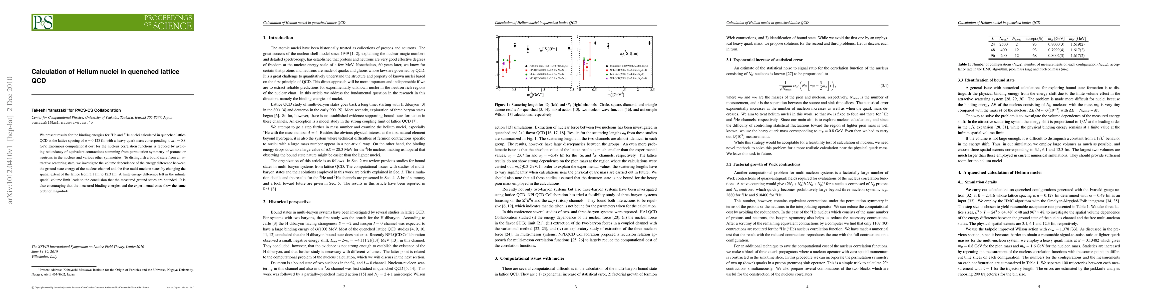 We present results for the binding energies for ^4He and ^3He nuclei calculated in quenched lattice QCD at the lattice spacing of a =0.128 fm with a heavy quark mass corresponding to m_pi = 0.8 GeV. Enormous computational cost for the nucleus correlation functions is reduced by avoiding redundancy of equivalent contractions stemming from permutation symmetry of protons or neutrons in the nucleus and various other symmetries. To distinguish a bound state from an attractive scattering state, we investigate the volume dependence of the energy difference between the ground state energy of the nucleus channel and the free multi-nucleon states by changing the spatial extent of the lattice from 3.1 fm to 12.3 fm. A finite energy difference left in the infinite spatial volume limit leads to the conclusion that the measured ground states are bounded. It is also encouraging that the measured binding energies and the experimental ones show the same order of magnitude.