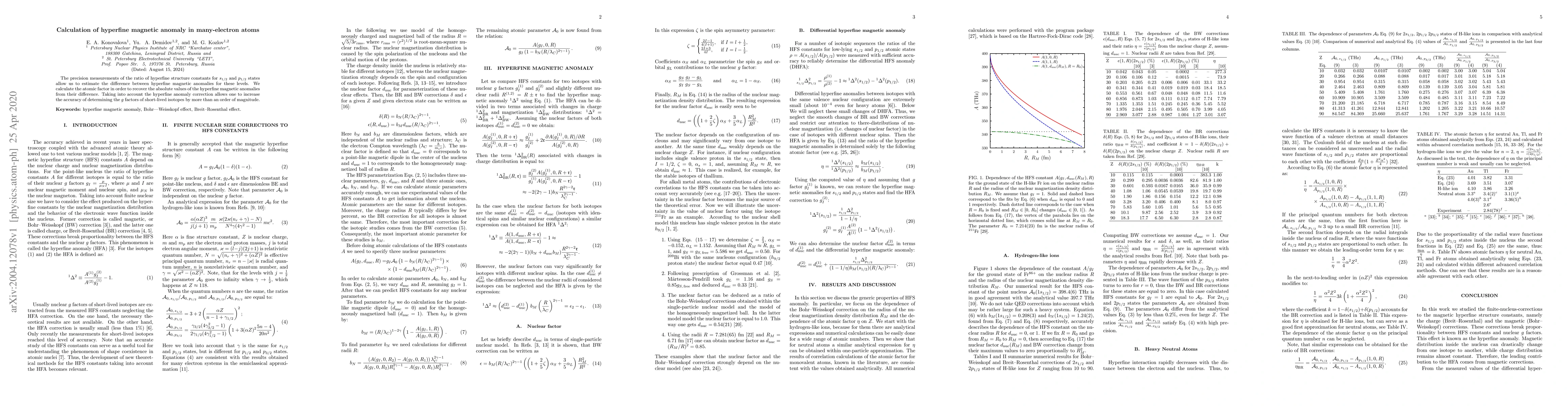 This research calculates the hyperfine magnetic anomaly difference between $s_{1/2}$ and $p_{1/2}$ states in many-electron atoms, enabling the recovery of absolute hyperfine magnetic anomaly values. The study significantly enhances the accuracy of g-factor determinations for short-lived isotopes by over an order of magnitude.