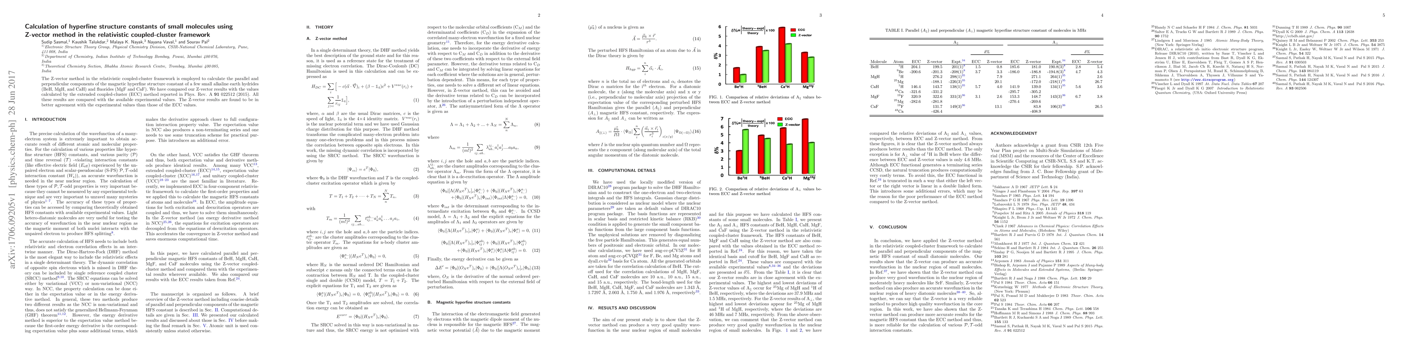 This paper calculates the magnetic hyperfine structure constants of small alkaline earth hydrides and fluorides using the Z-vector method within a relativistic coupled-cluster framework. The Z-vector results show better agreement with experimental values compared to extended coupled-cluster method results.