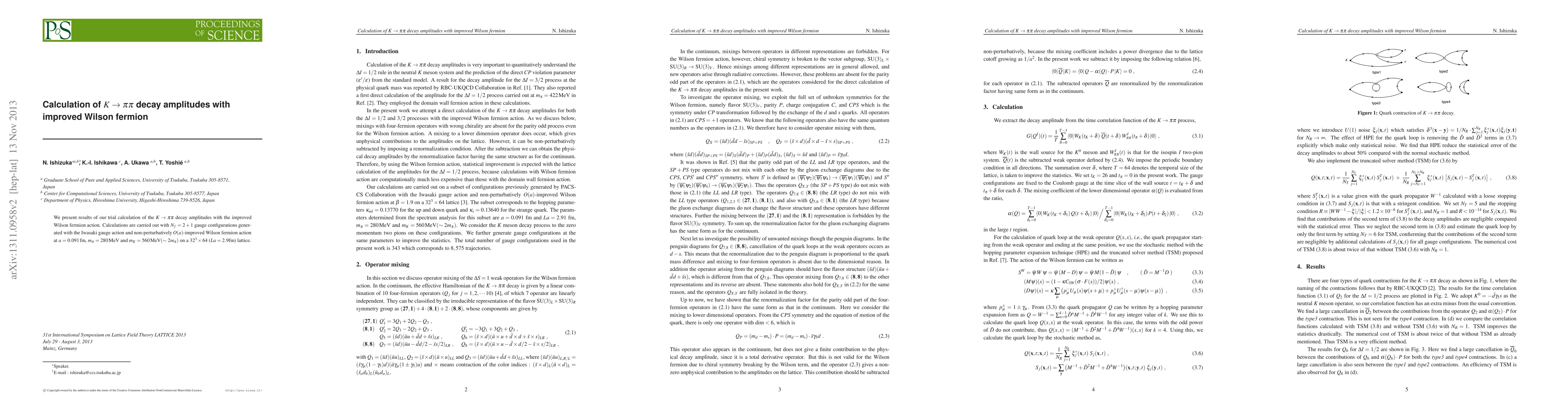 Researchers calculated $K o ilde{ ho}$ decay amplitudes using an improved Wilson fermion action on a lattice with gauge configurations and non-perturbatively improving the action.